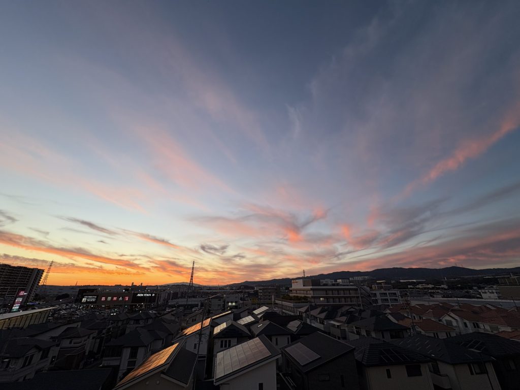 本校だと、校舎の4階から見る西の空がとてもきれいで印象的です。上の写真をご覧になられて、どんなふうにお感じになられるでしょうか? ご入学いただければ、毎日こんな景色を見られますよ。