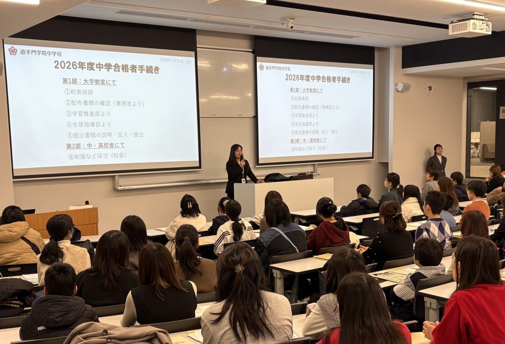 中学入試が全日程終了し、本日は入学予定の方々にご来校いただいて、入学の手続きを行いました。寒い中、また朝早い時間帯からお越しいただき、ありがとうございました。