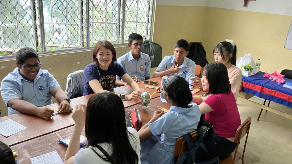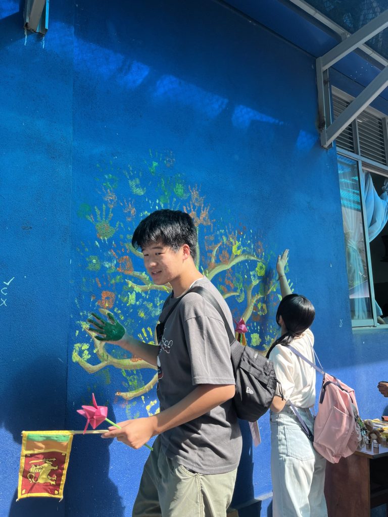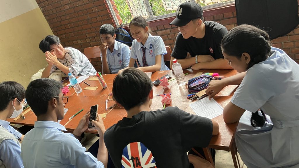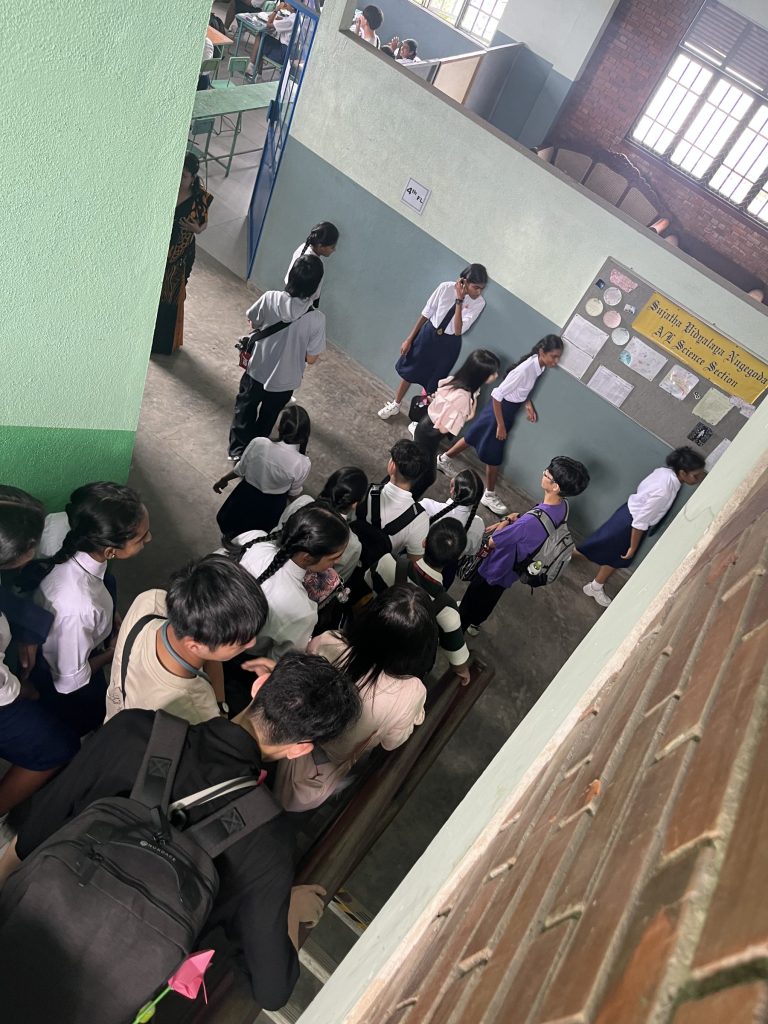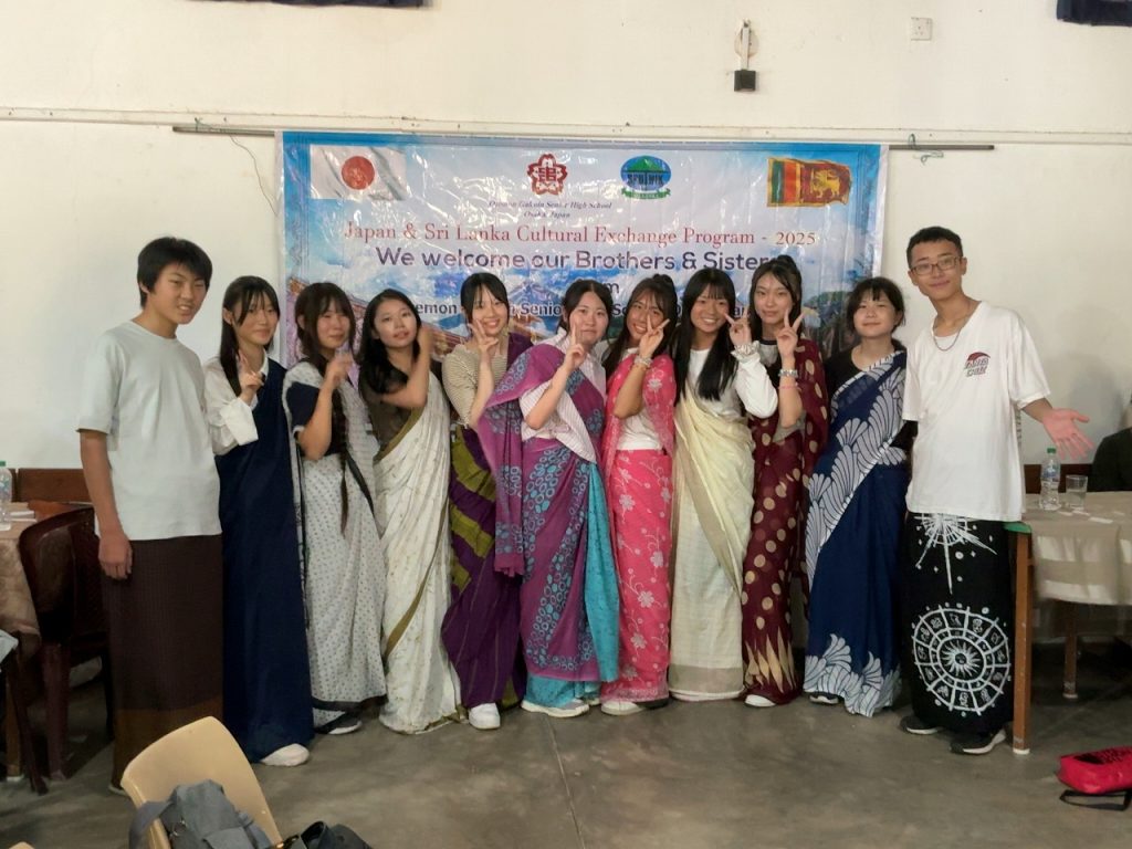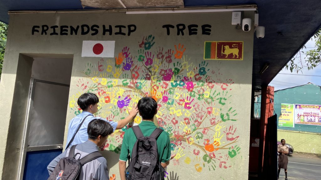 学校交流では、積極的に現地の学生とコミュニケーションをとろうとする姿が見られました。2人1組のペア4つ程でグループになって、スリランカの言葉を教えてもらったり、日本ことを伝えたりしていました。お寿司を作る知育菓子が人気で盛り上がっていたグループもありました。