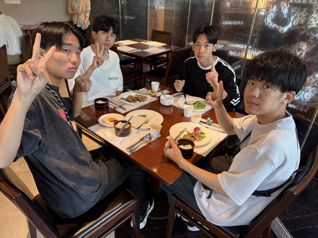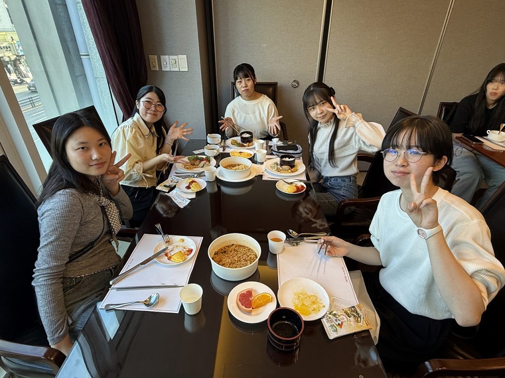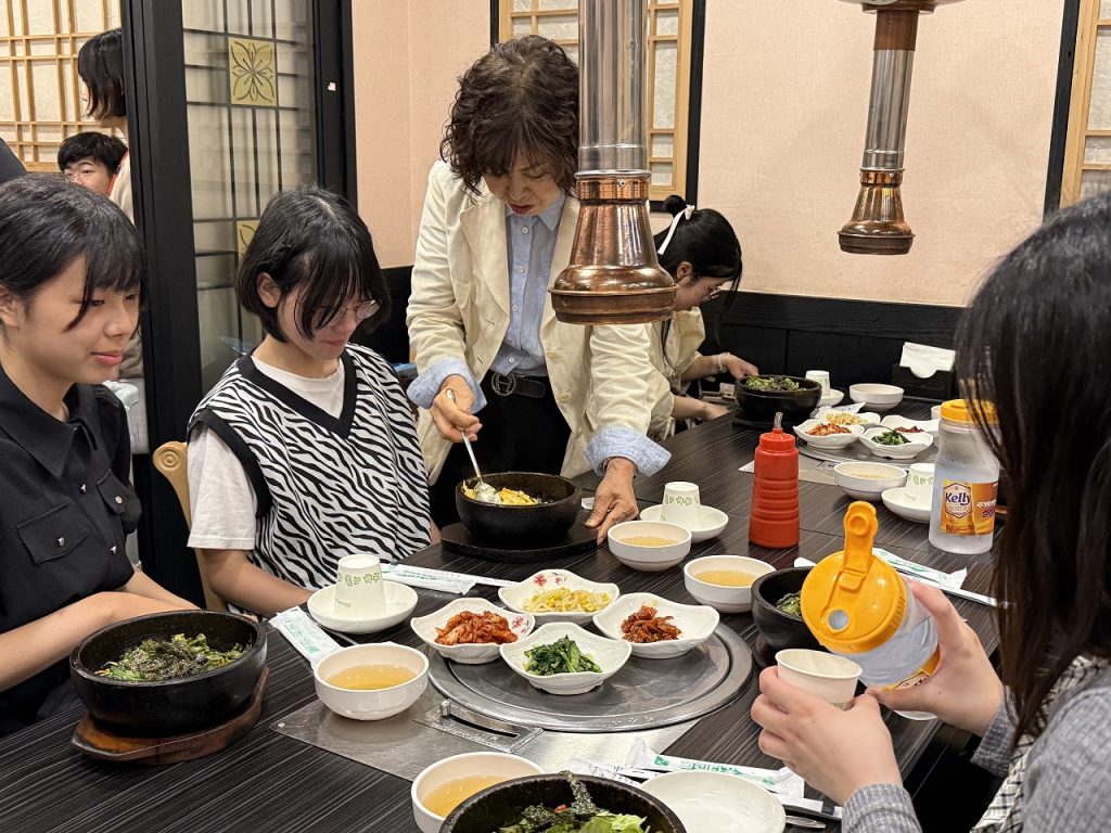 バンド演奏などで迎えていただき、グループで交流を行いました。お土産の交換などをして、日本から持って行ったけん玉や折り紙などをして交流を深めました。楽しい学校交流の時間の後、お昼にはビビンバをいただきました。