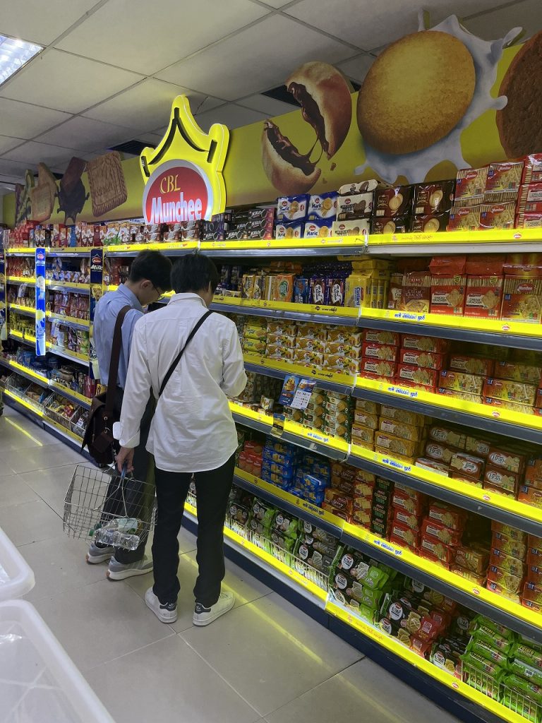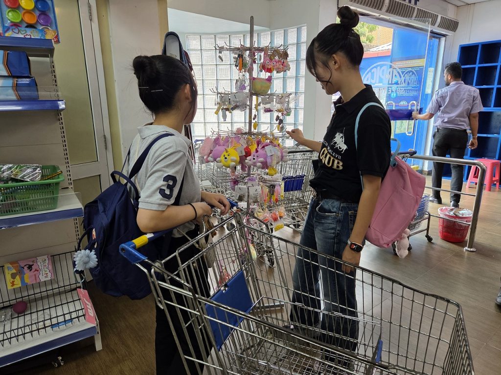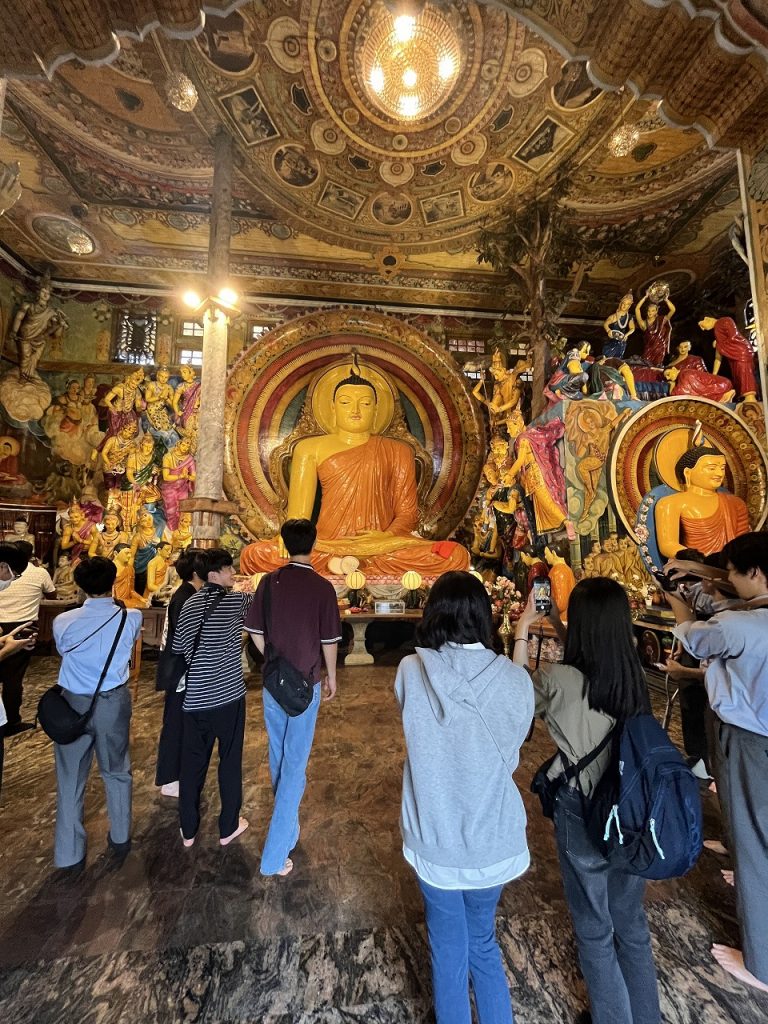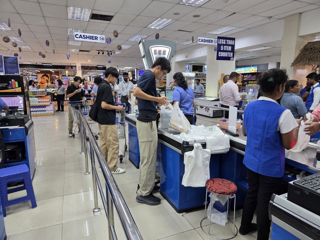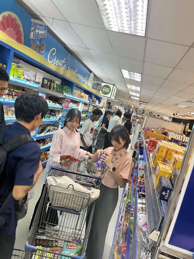 スーパーマーケットや寺院を回りました。スーパーでは日本とは違う品ぞろえに生徒たちも興味津々。お菓子や紅茶を購入する生徒が多かったです。