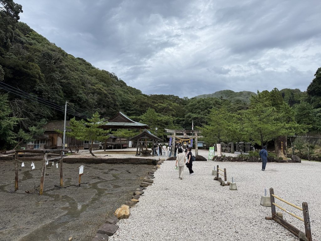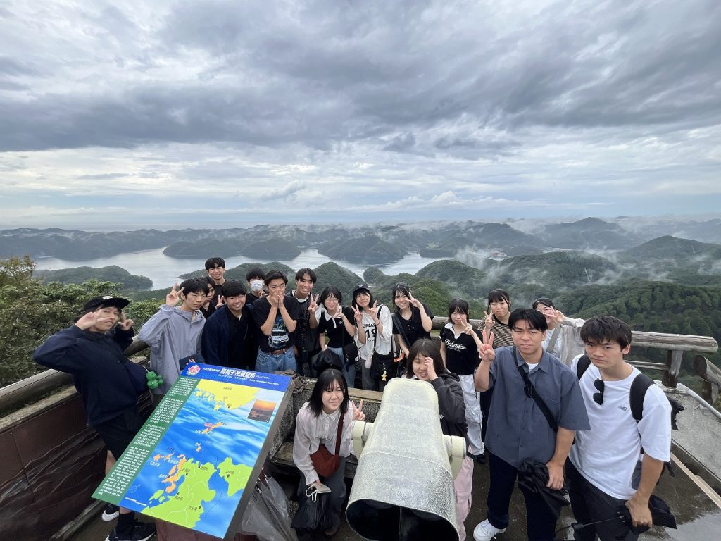 午後から烏帽子岳展望所に向かう道中、ゲリラ豪雨に遭いましたが、展望所到着時には雨が止み美しい霧がかった景色をみることができました。その後、和多都美神社を拝観し、宿へ向かいました。