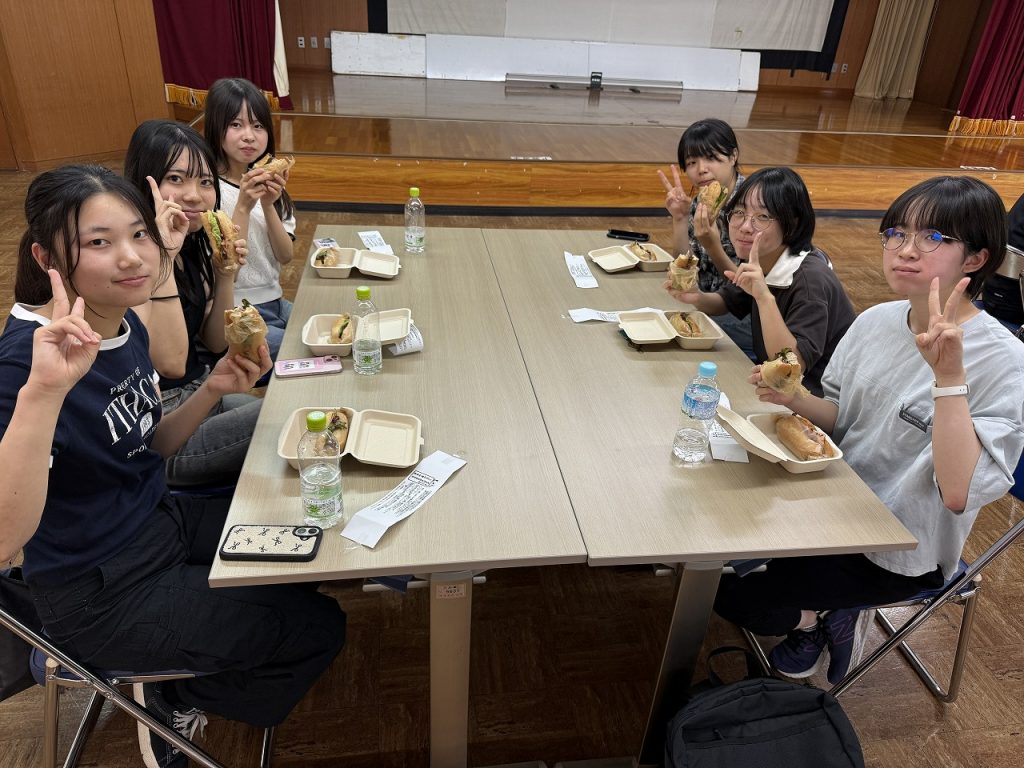 今回は、資源の利用という側面からレザークラフト体験、そして、昼食時にはジビエ登山弁当と名付けられた鹿肉や猪肉のサンドイッチをいただきました。