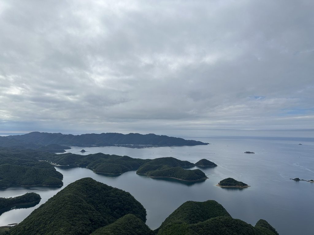 午前中に降っていた雨も止み、約3時間のトレッキング。頂上から眺める浅芽湾の眺めは絶景でした!