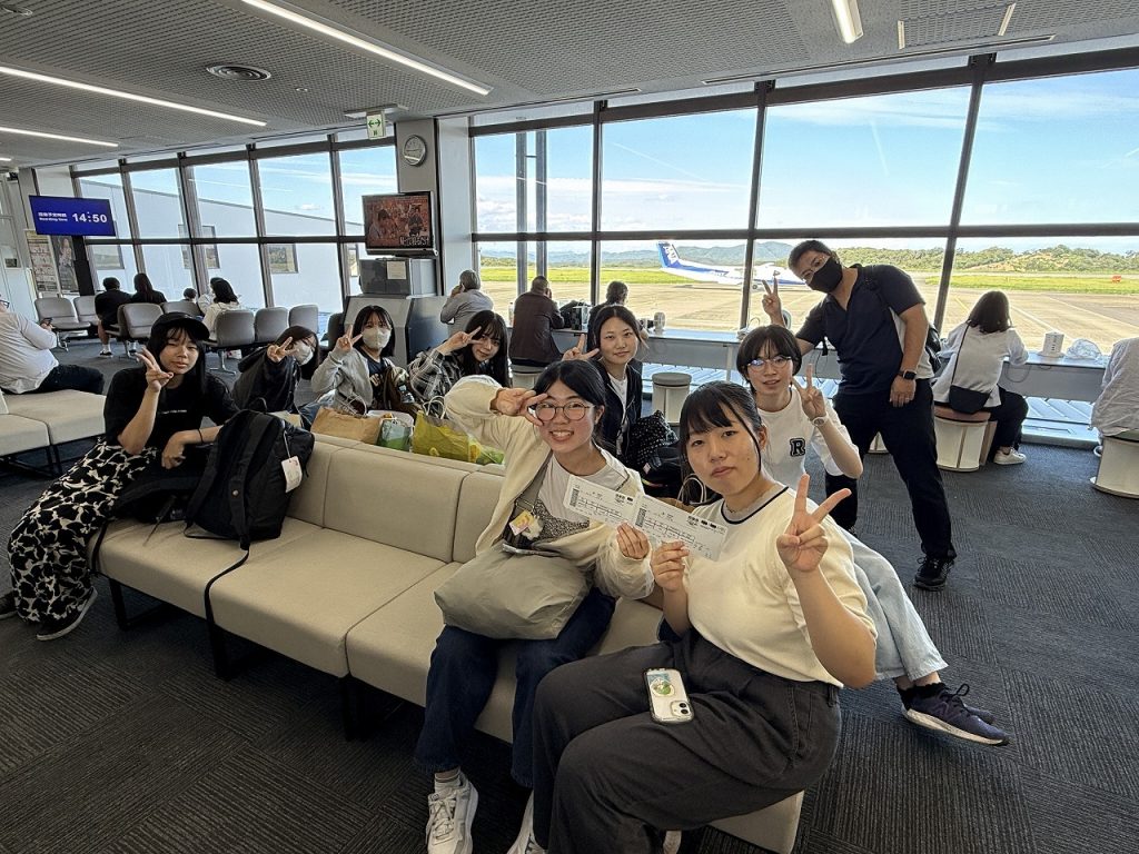 対馬やまねこ空港から福岡空港を経由して伊丹空港に全員無事に戻ってきました。