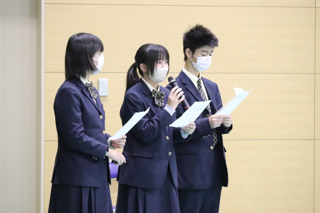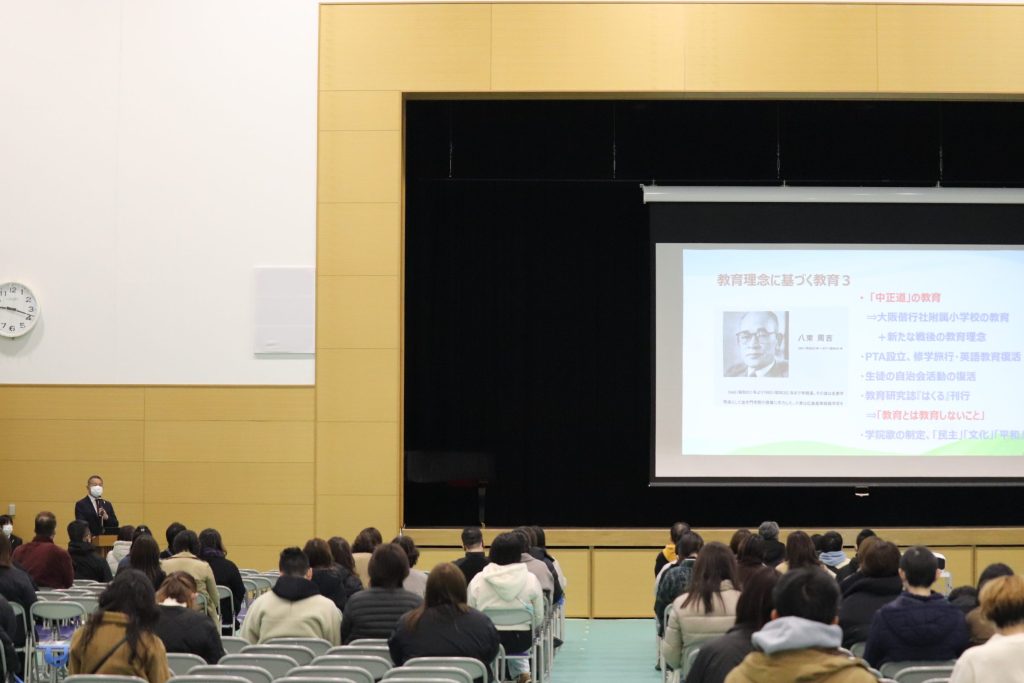 児童の皆さんが問題に取り組んでいる間、体育館では保護者の方を対象に国語・算数・理科・英語の問題傾向について説明もしました。また、本校中学2年生の生徒による学校紹介も行い、学校での様子をお伝えさせていただきました。