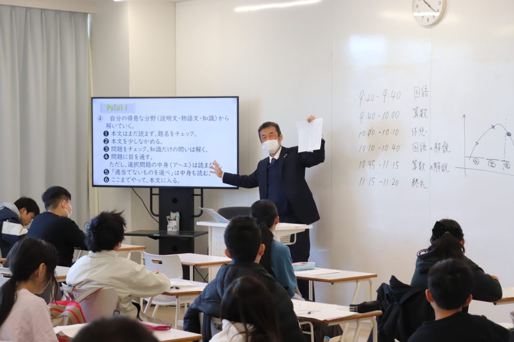 今回は、国語と算数の入試対策授業を行いました。まずは問題を解いて、その後各教科ごとに授業を行い、解く際のポイントなどをお伝えさせていただきました。