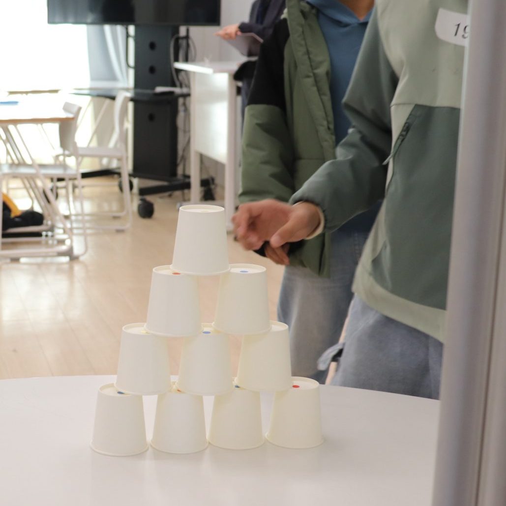 今回は紙コップを使ったミッションでした。少しずつ課題が変化する中でチームでどうやったらうまくいくか作戦を立てながら取り組んでもらいました。