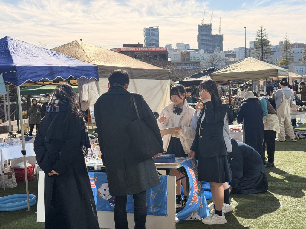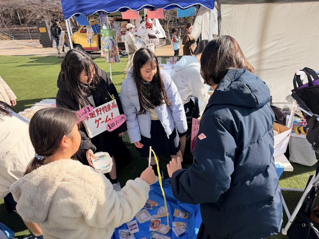 お買い物で来られたお客様がたくさん足を止めてくださいました。商品を見ていただきなたら生徒たちも与謝野町の魅力をアピール!