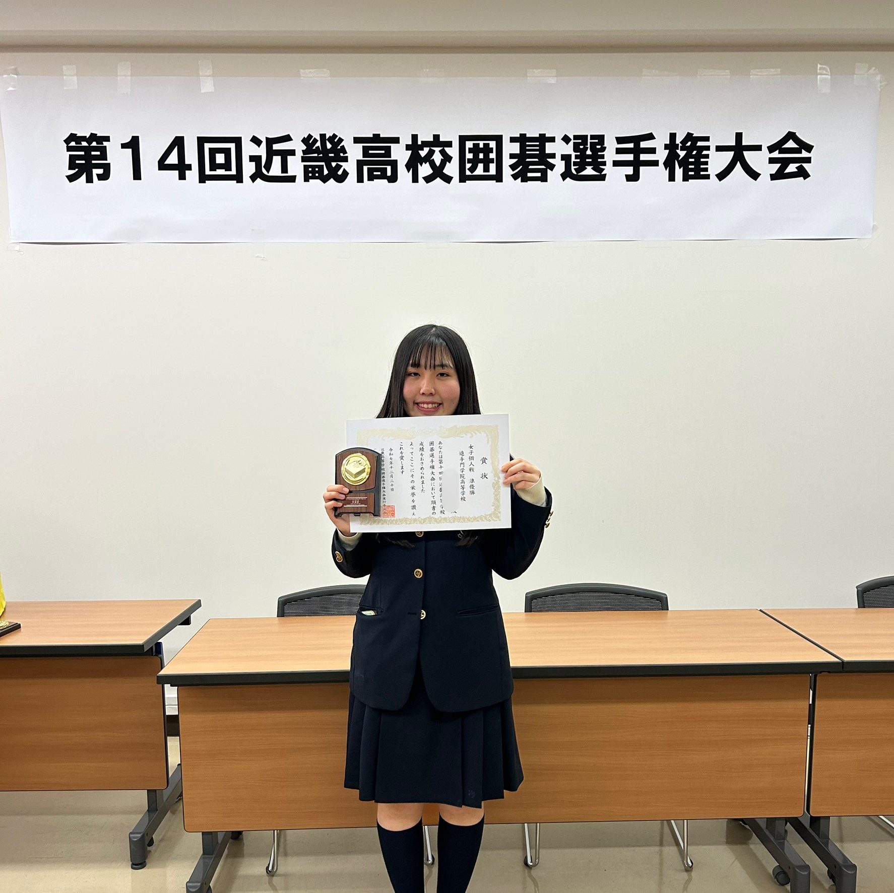 12月20日(土)21日(日)に灘校等学校で行われた上記大会に参加しました。個人戦(女子の部)に参加した生徒が準優勝となり、3月21日(土)に大阪商業大学で行われる第20回全国高等学校囲碁選抜大会への出場を決めました。同大会への出場は本校からは初出場となります。また、団体戦(女子の部)は残念ながら入賞には届きませんでしたが、近畿他府県の生徒と親睦を深めるよい機会となりました。