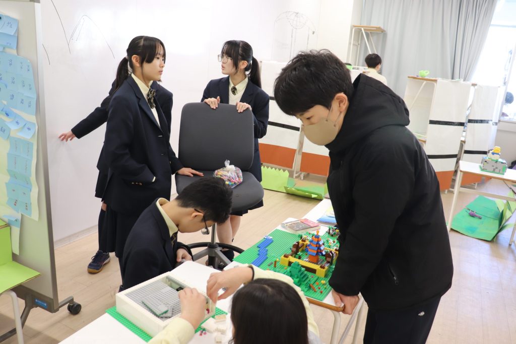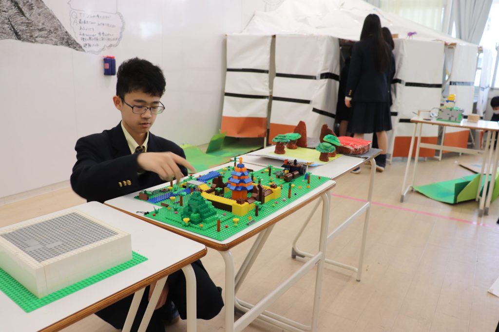昨年、関西万博に行き実際に見学したパビリオンでの経験を活かして、各チーム工夫を凝らしてパビリオンを作りました。