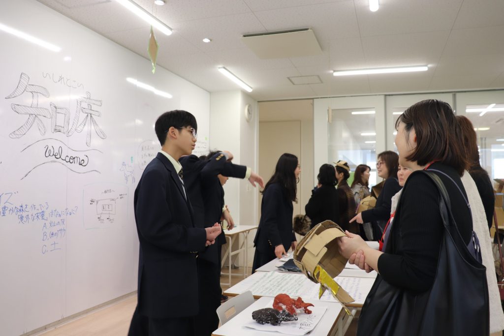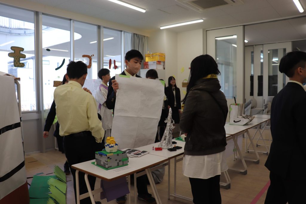 最終日には保護者の方にも来ていただき、生徒たちが作ったパビリオンを体験していただきました。1年間調べた成果をしっかりとプレゼンしている様子に頼もしさを感じました。