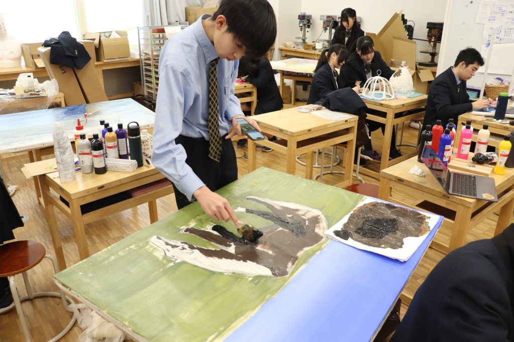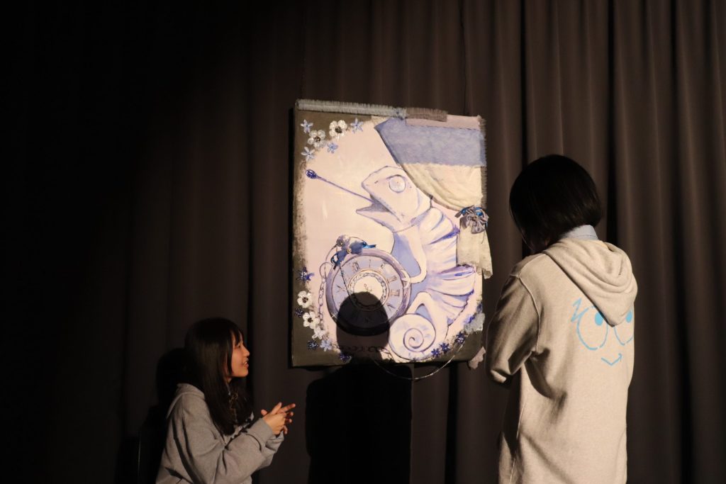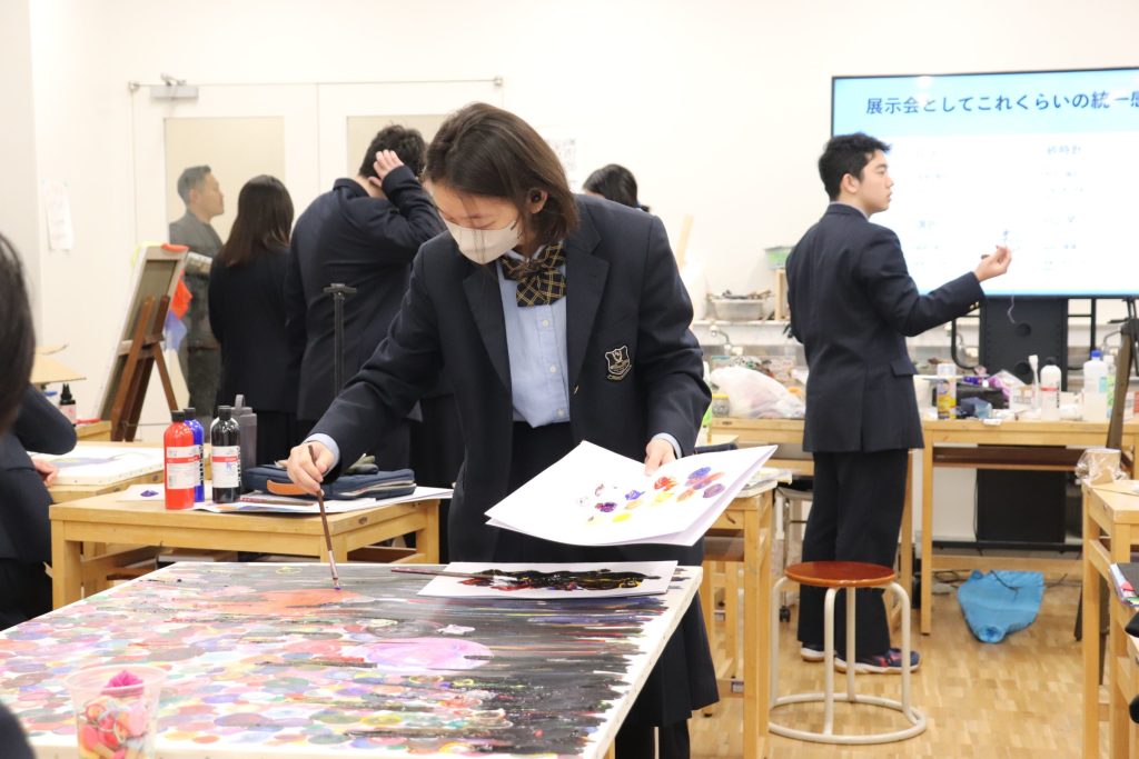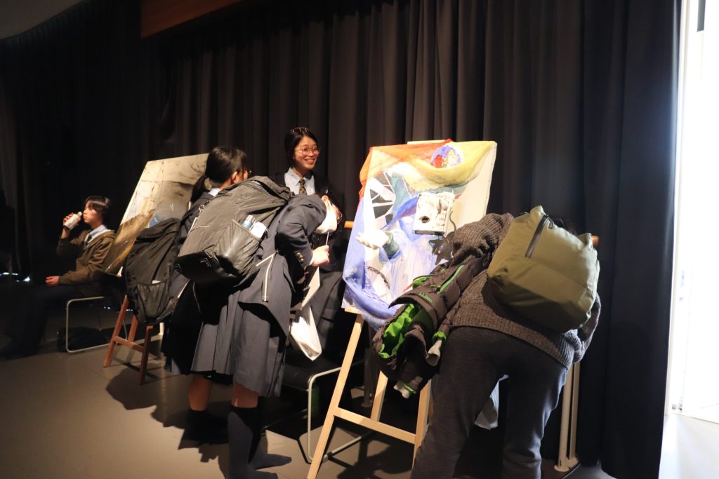 高1のテーマである「真」について、それぞれが考える「真」をアートで表現しました。当日は、多くの方に来ていただきました。生徒たちは、それぞれが向きあった「真」についてどういった意図でアート作品に落とし込んだのか、今、自分が考える「真」についてしっかりとプレゼンしていました。