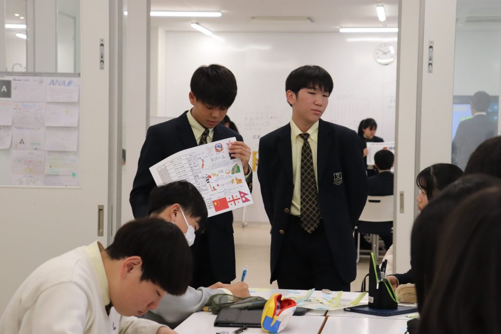 国ごとにチームで分かれて、国ごとの課題を洗い出し、課題を解決するために時間割を組むとしたらどんなものになるかを考えました。また、それを組む際には同盟国も含めた案を作成しました。国ごとに課題は違いますし、そこには宗教の問題であったり、地理的な問題などいろんなことが複雑に関わり合っています。生徒たちは時間を課題を考え、意見を出し合いました。