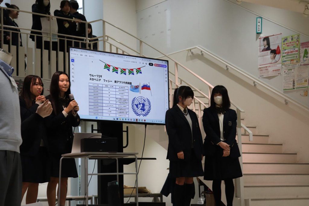 中学1年から3年までチームに分かれて模擬国連を行いました。