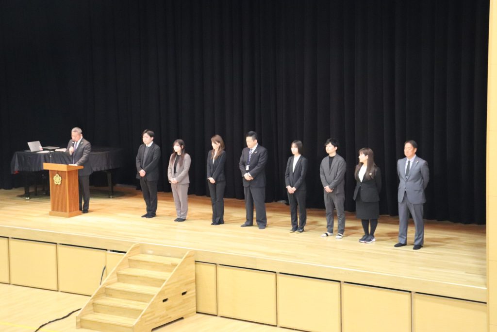 修業式の後は、離任式として今年度をもって本校を離れられる先生方の紹介がありました。4月からはそれぞれ新たなフィールドで活躍されると思います。追手門学院中・高等学校での勤務、お疲れ様でした。