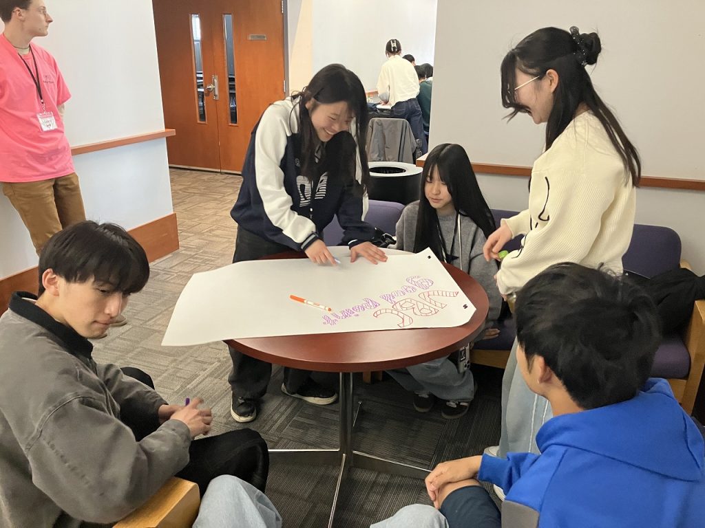 また、UBCのバディとゲームをして遊んだり、グループに分かれて英会話タイムをしたり、最初は「YES」や「NO」など簡単な単語で終わっていた会話が、だんだん長くなるようになりました。レッスンの成果ですね。夜の英会話タイムではバディだけでなく、元大学教授の方や高校生もゲストで参加してくださって、いろんな方と話をする機会となりました。