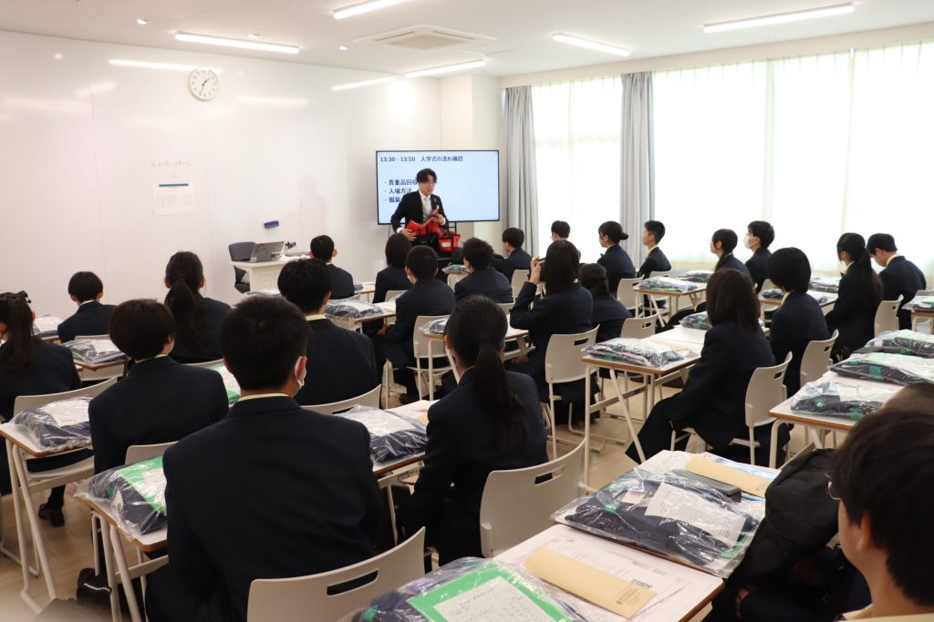 高校に続いて午後からは中学第70期の入学式を行いました。