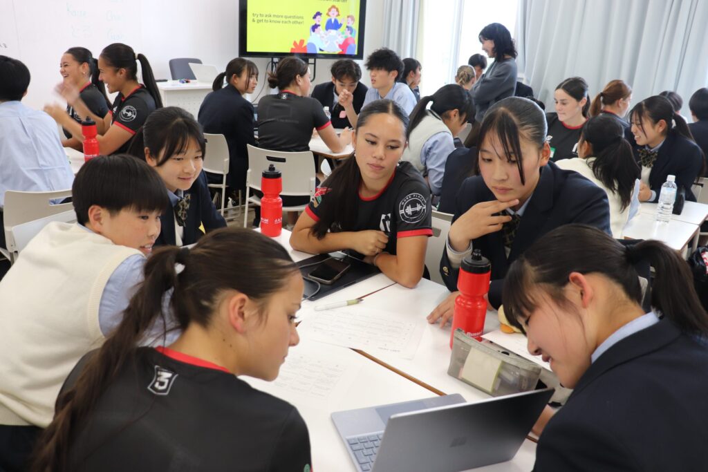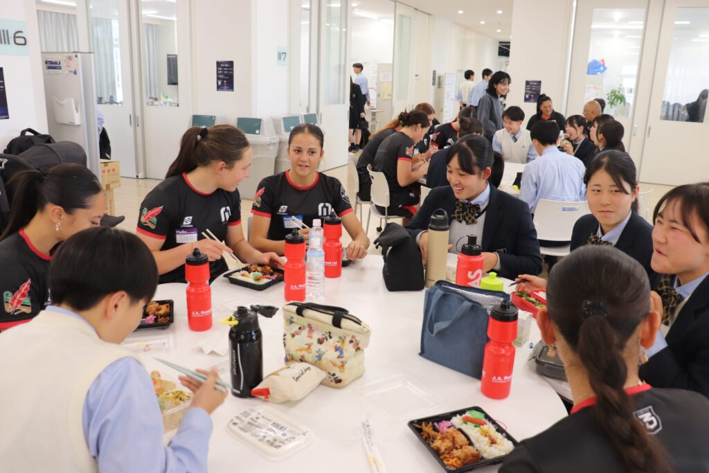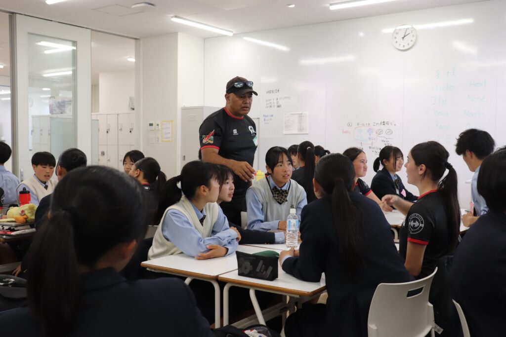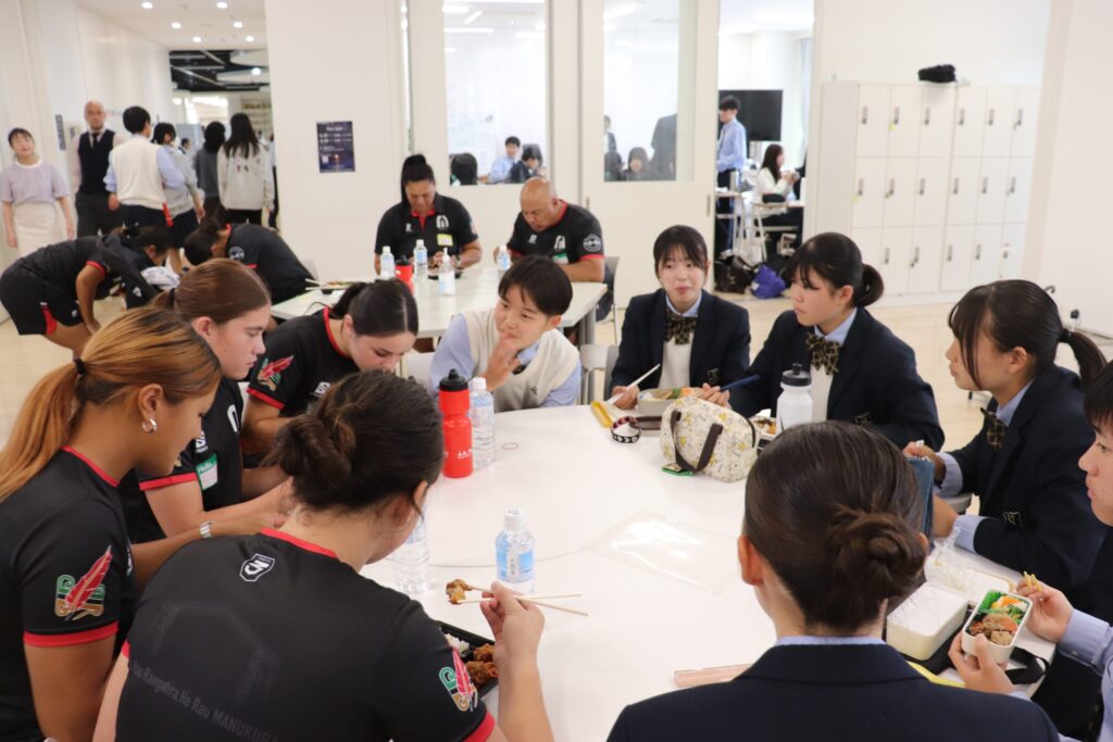 彼女たちは、来週福岡で開催されるサニックスワールドラグビーユース交流大会2026に出場するために来日し、2月にニュージーランドで交流した縁もあり、今回本校を訪問してくれました。