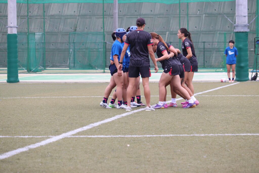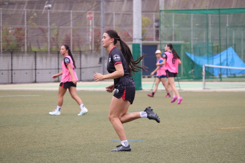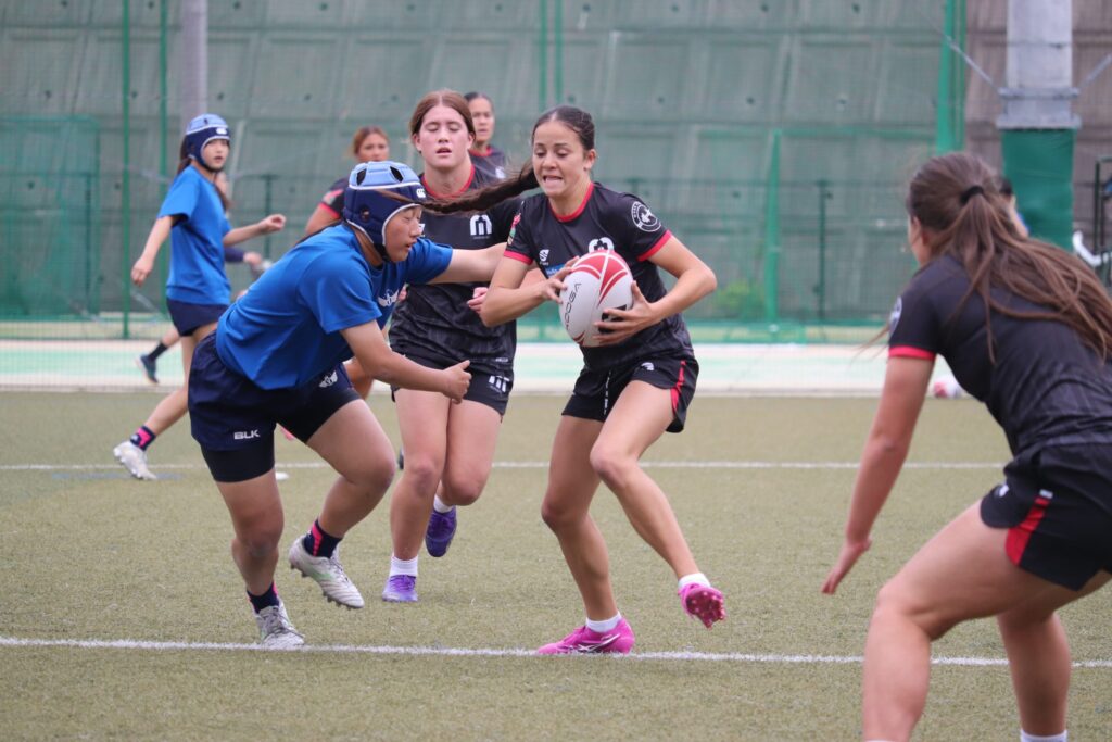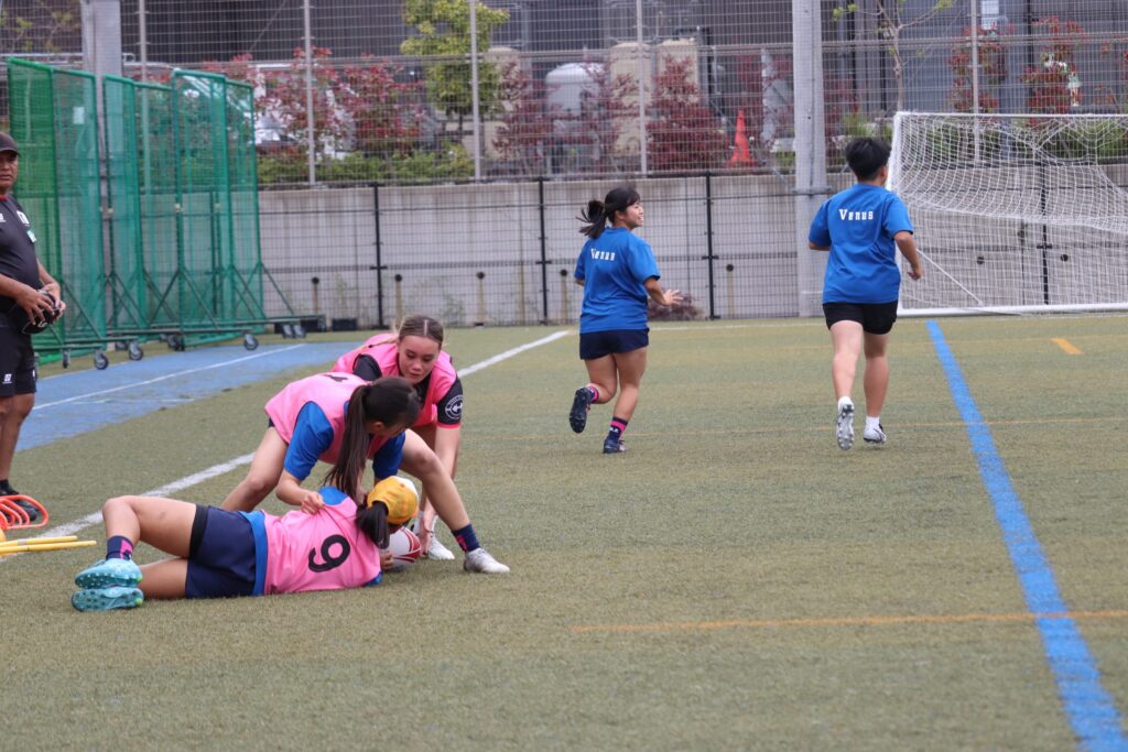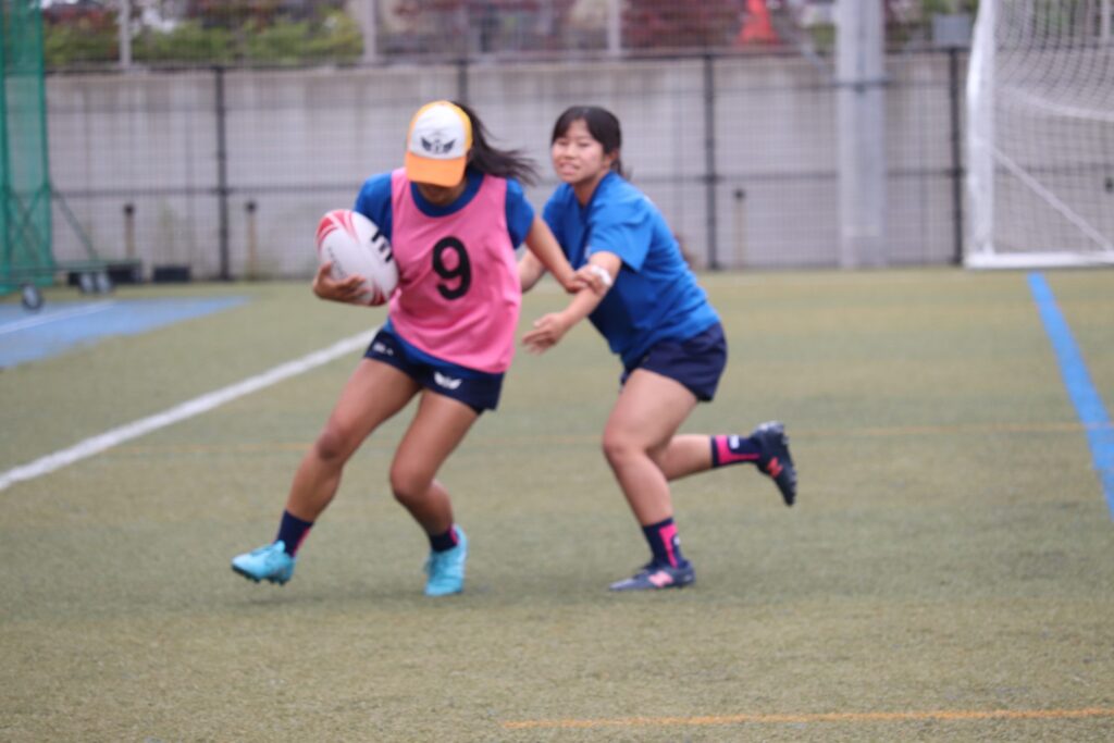 高3スポーツコースの生徒たちと短い時間でしたが交流をしました。放課後は本校女子ラグビー部とグラウンドで一緒に練習をしました。また、簡単な試合形式での練習もしました。