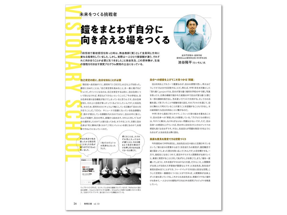 メディア掲載の一例。こちらは『教育応援』のVol53より。このように多くの媒体で探究の取り組みが紹介されました。参照:教育応援(冊子)