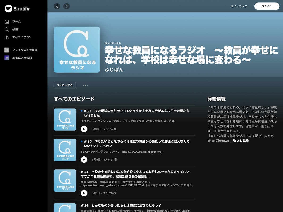 ふじぽんが力を入れている「幸せな教員になるラジオ」は、すでに放送100回を超えています。