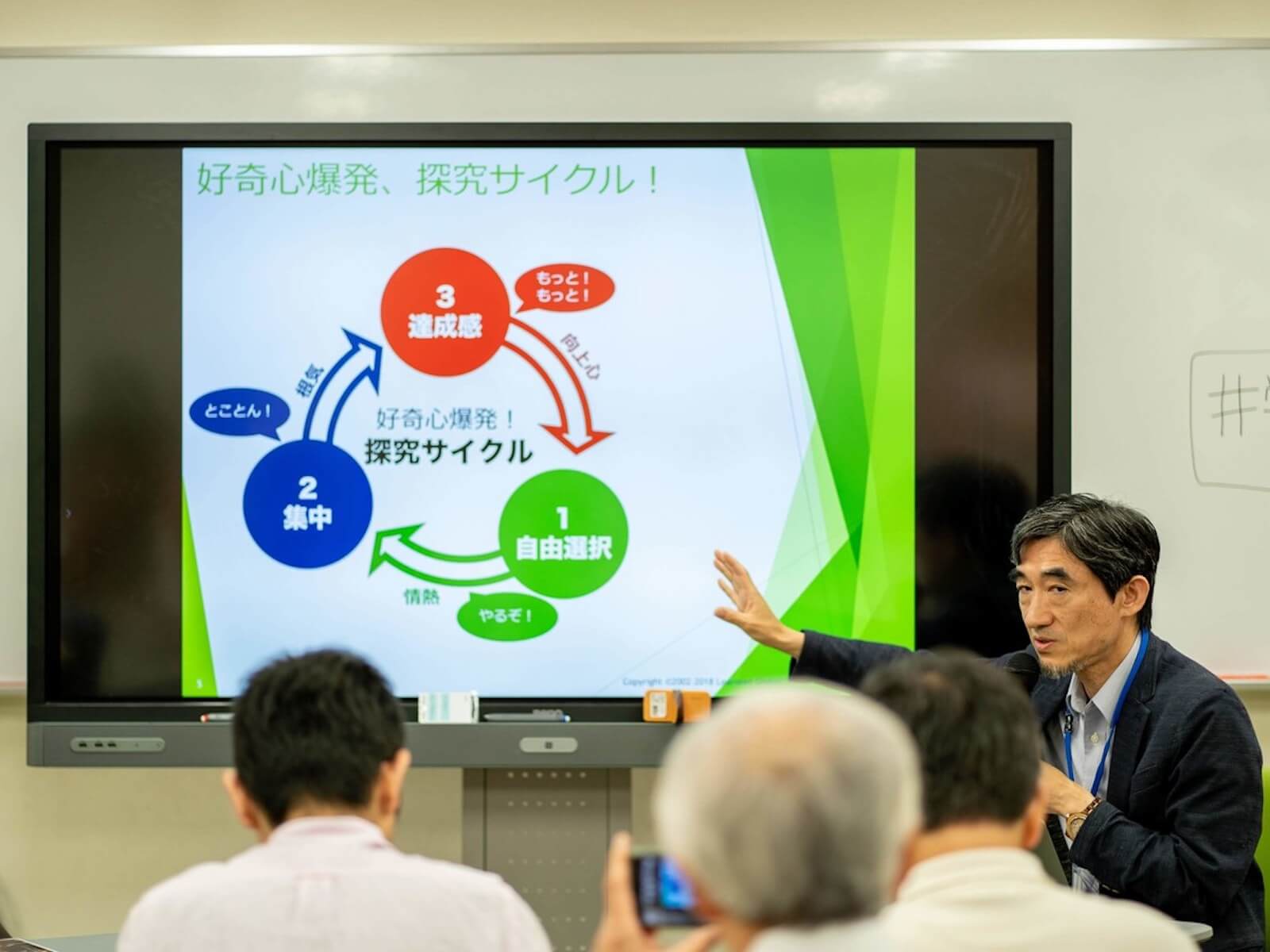 自身が考案した「探究心サイクル」を説明する炭谷氏の言葉にも熱がこもります。