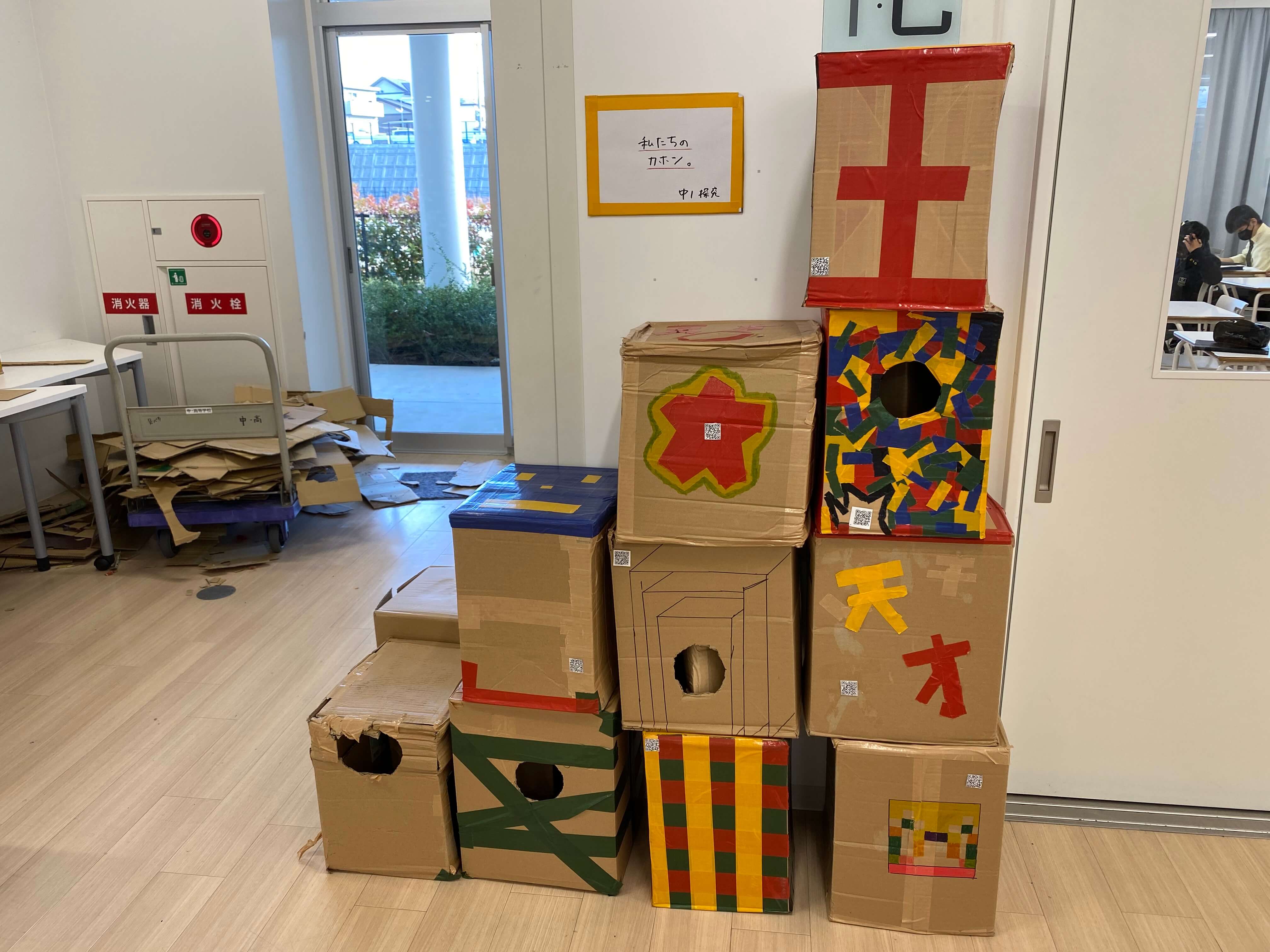 思い思いに作った「音」から「音楽」。最後に日常にある音を付け加えて「13秒」の作品を作りました。その音楽をQRコードにし、楽器にペタペタ。読み取りながらみんなんで鑑賞し、フィードバックをする。楽しんでいました。