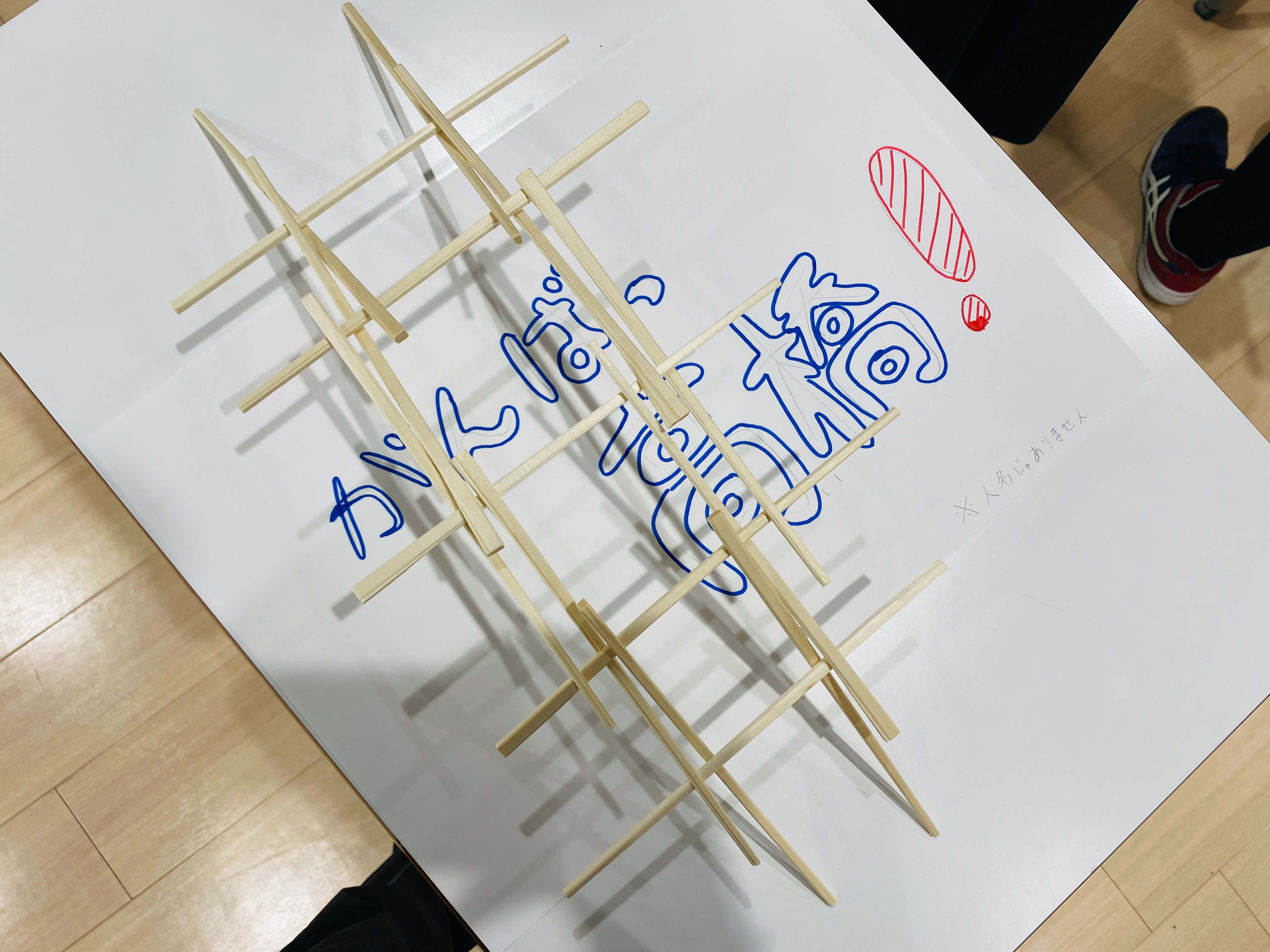 • 自分たちはかけると言う発想しかなかったけど、ほかの班は吊るすなど色々なはんそうがあった。