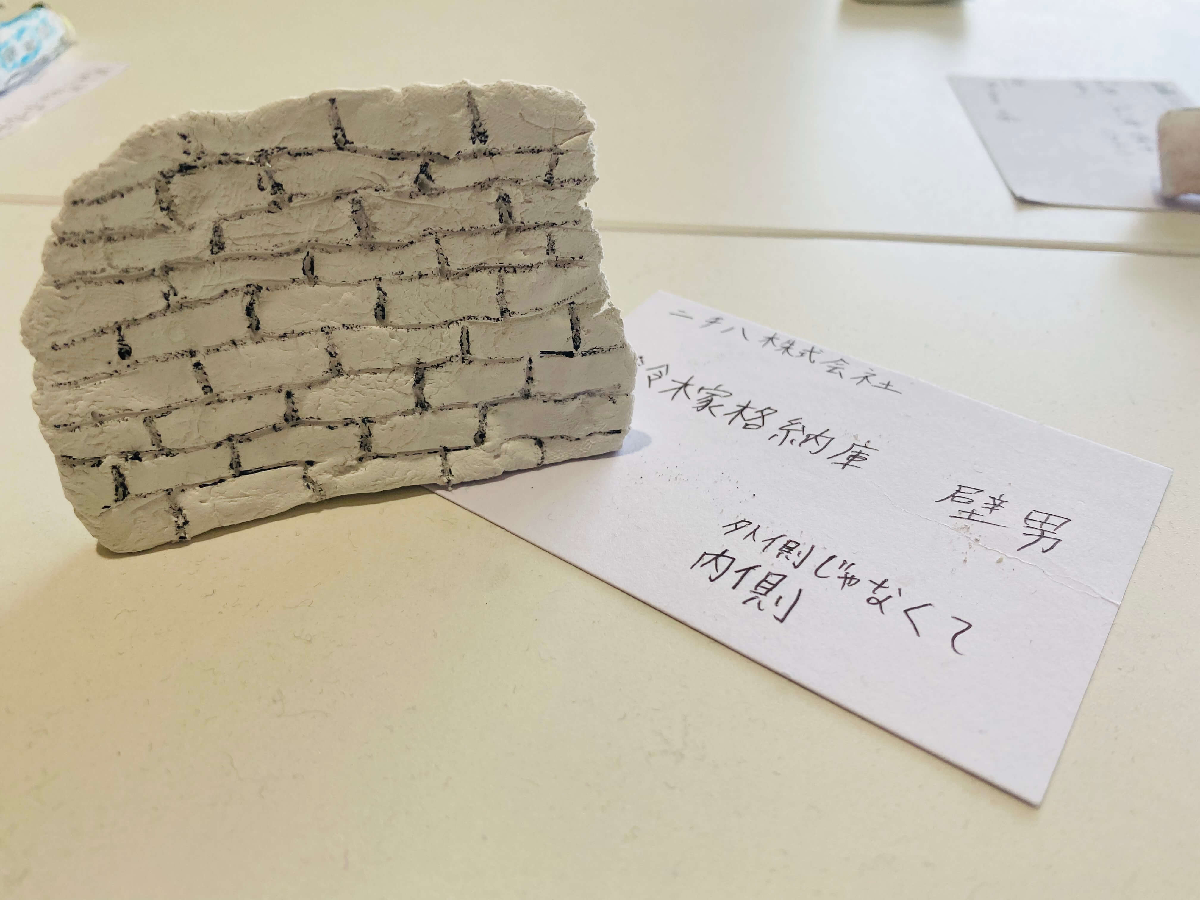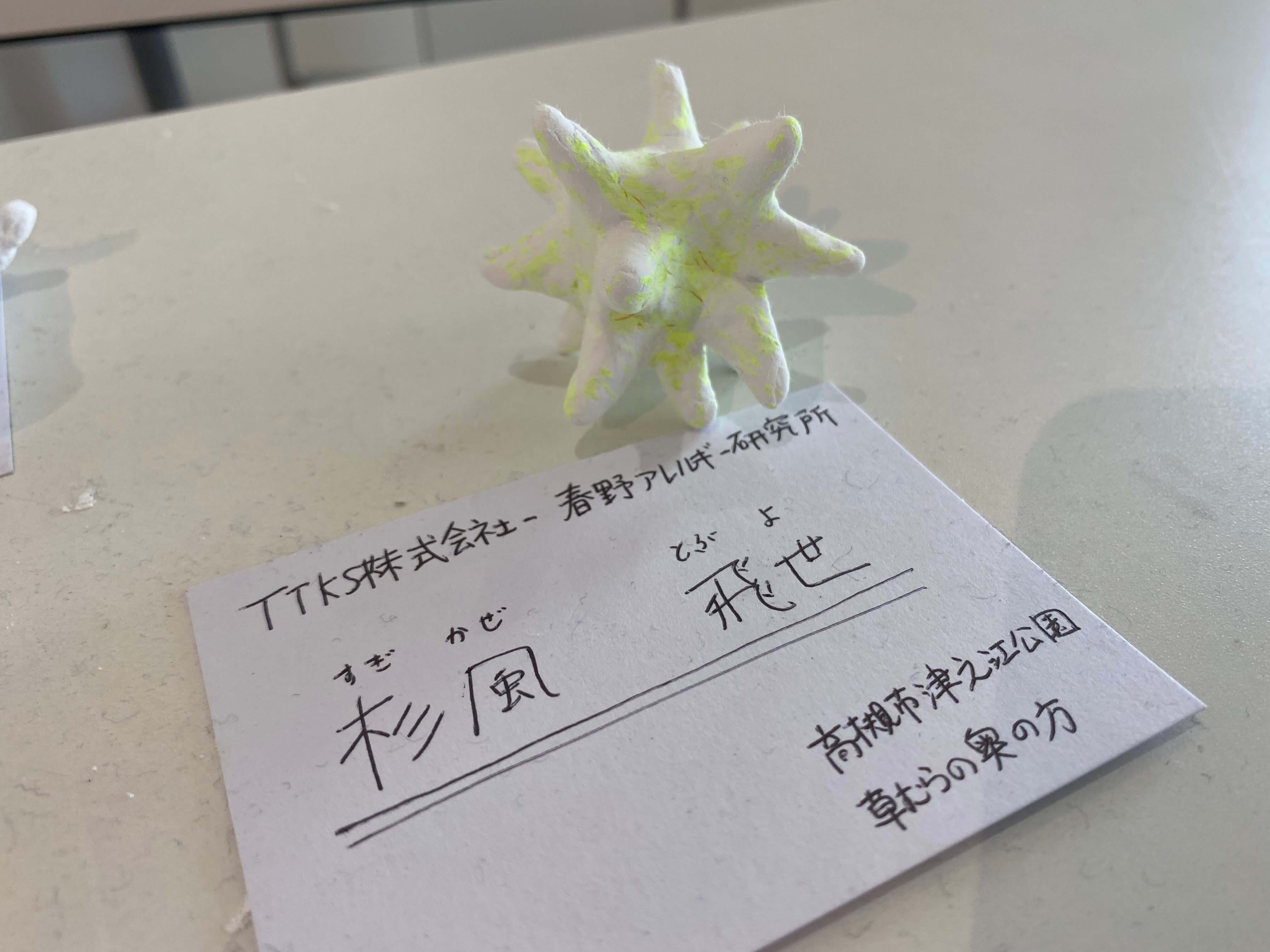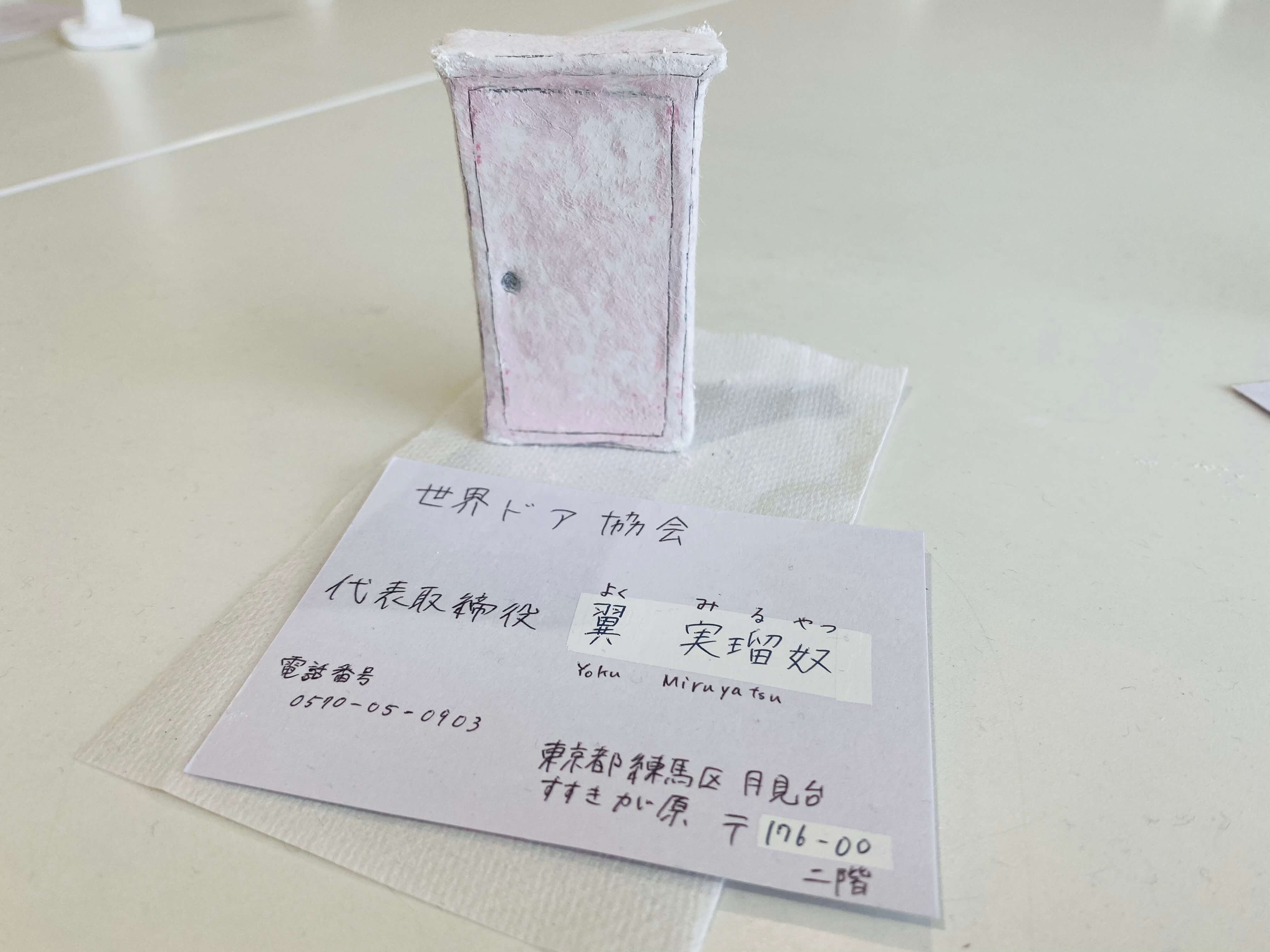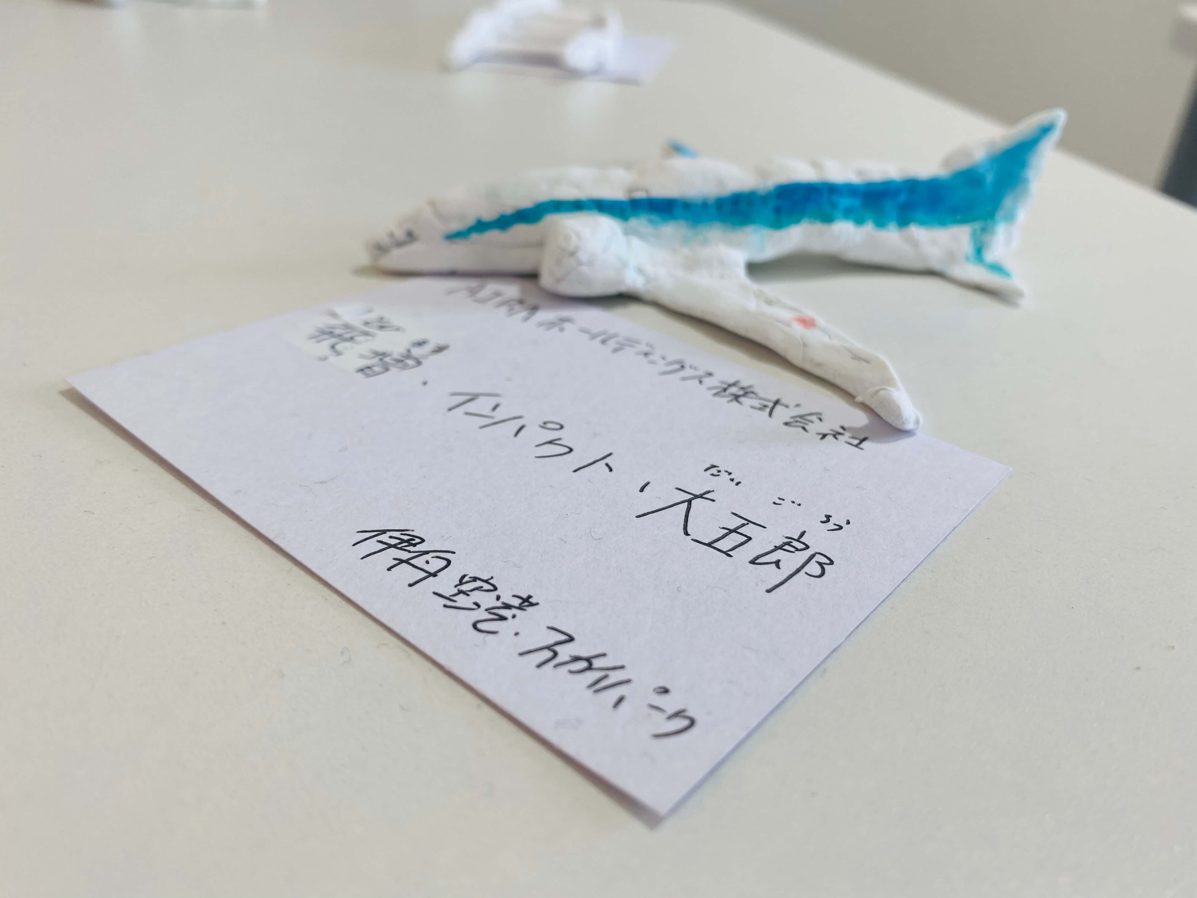 仕上げに名刺を作りました。オリジナル会社名、名前、住所(そのモノがある場所)。想像から始まったモノを創造する頃には、シンプルには言い表すことができない情報が詰まったモノに変身する不思議な体験でした。