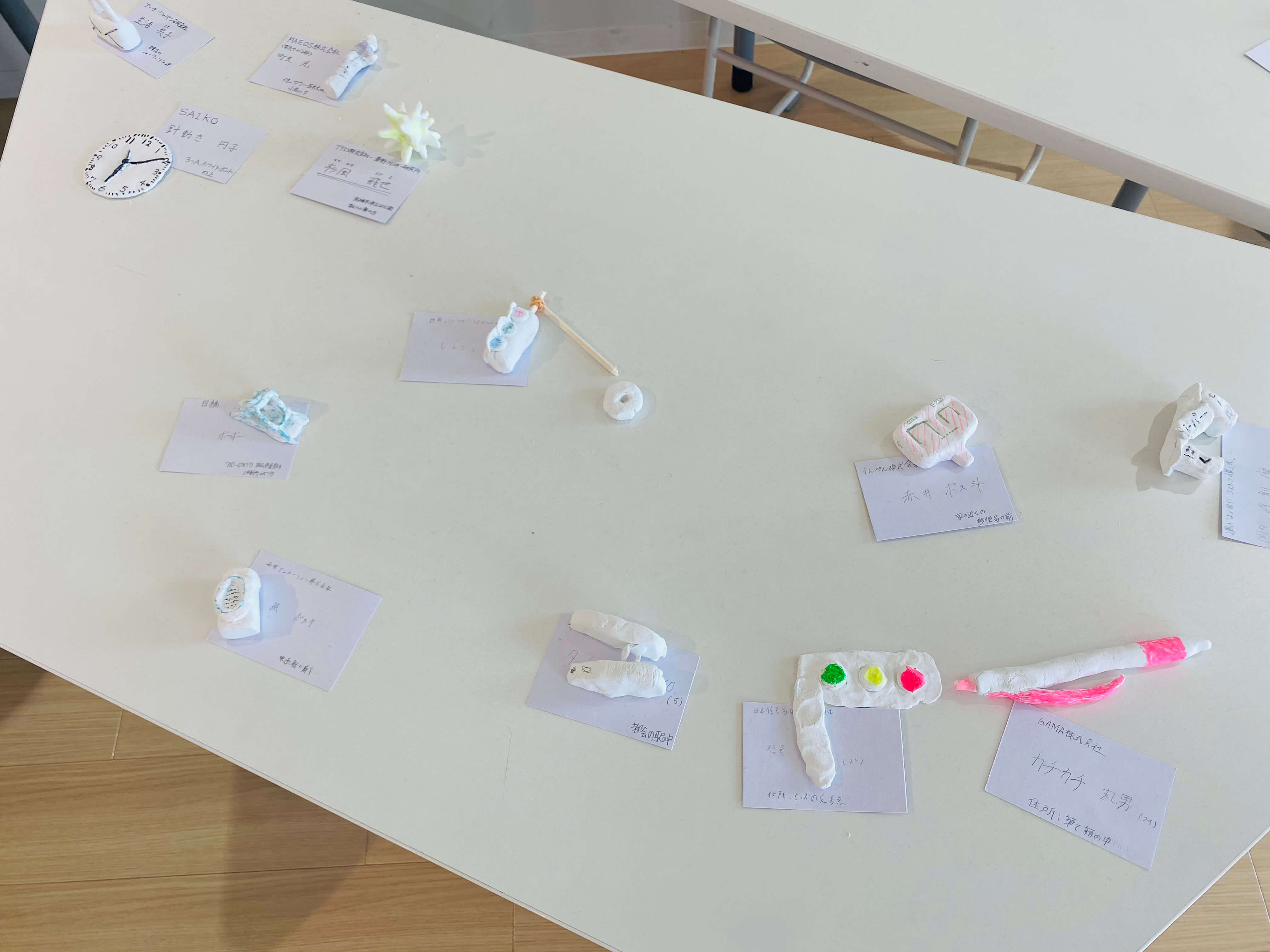 1番人とすれ違ってそうなモノ、自分がすれ違って記憶に残っているモノ、何か気になるモノを1つ選ぶ。いつ、出会ったもの?選べたらそのモノの解像度を上げるために、「名前」を言わずにそれをペアの人に伝えてみました。それにはどんな役割がある?色は?形、大きさは?できるだけ詳細に伝えて、ペアは答えを当てる!さらに!Google Earthで実際に探して見てみました。この時点ですでに愛着が。。。とここで、粘土で再現!!!細かいところまでこだわっている様子でしたよ。