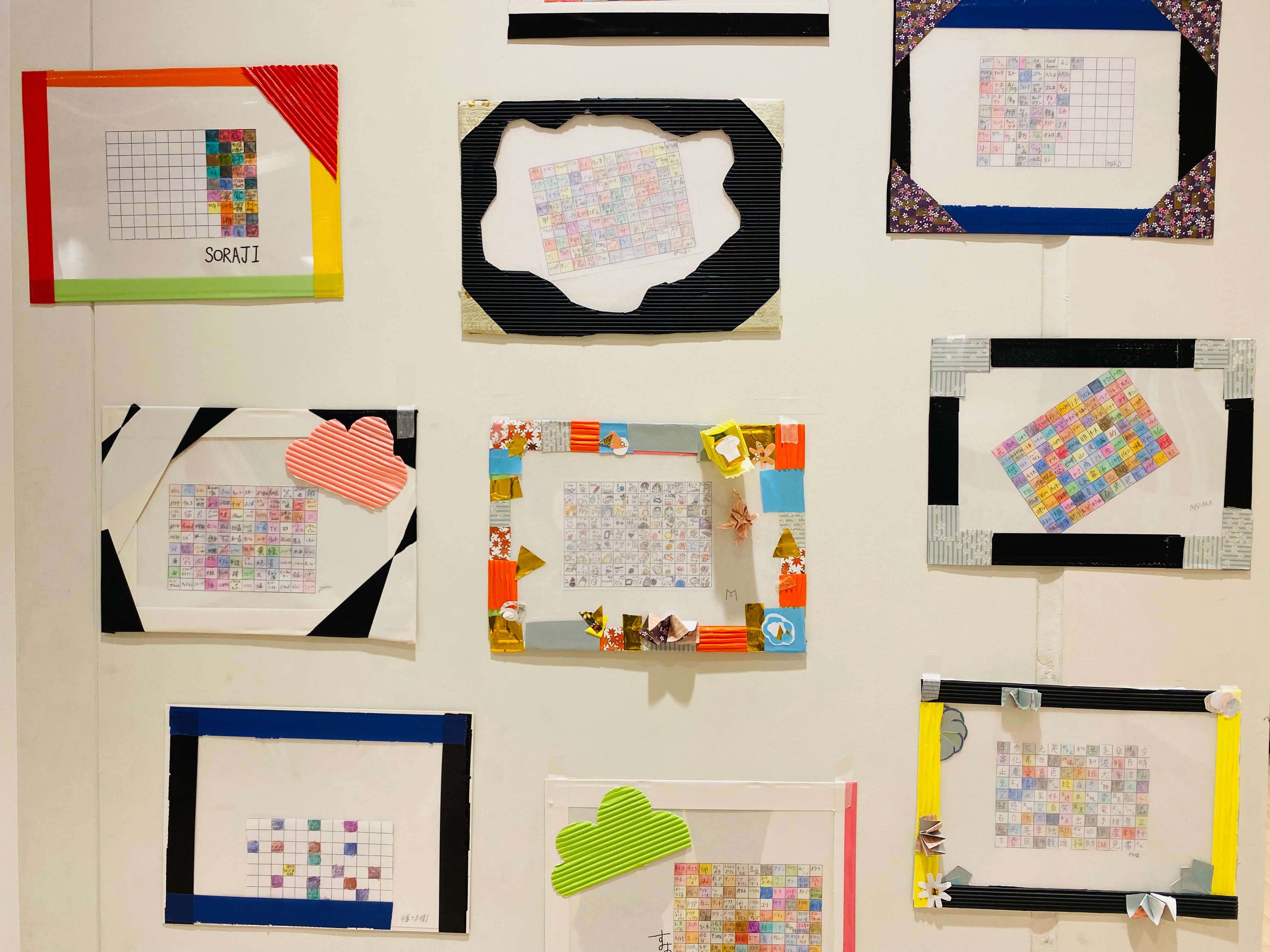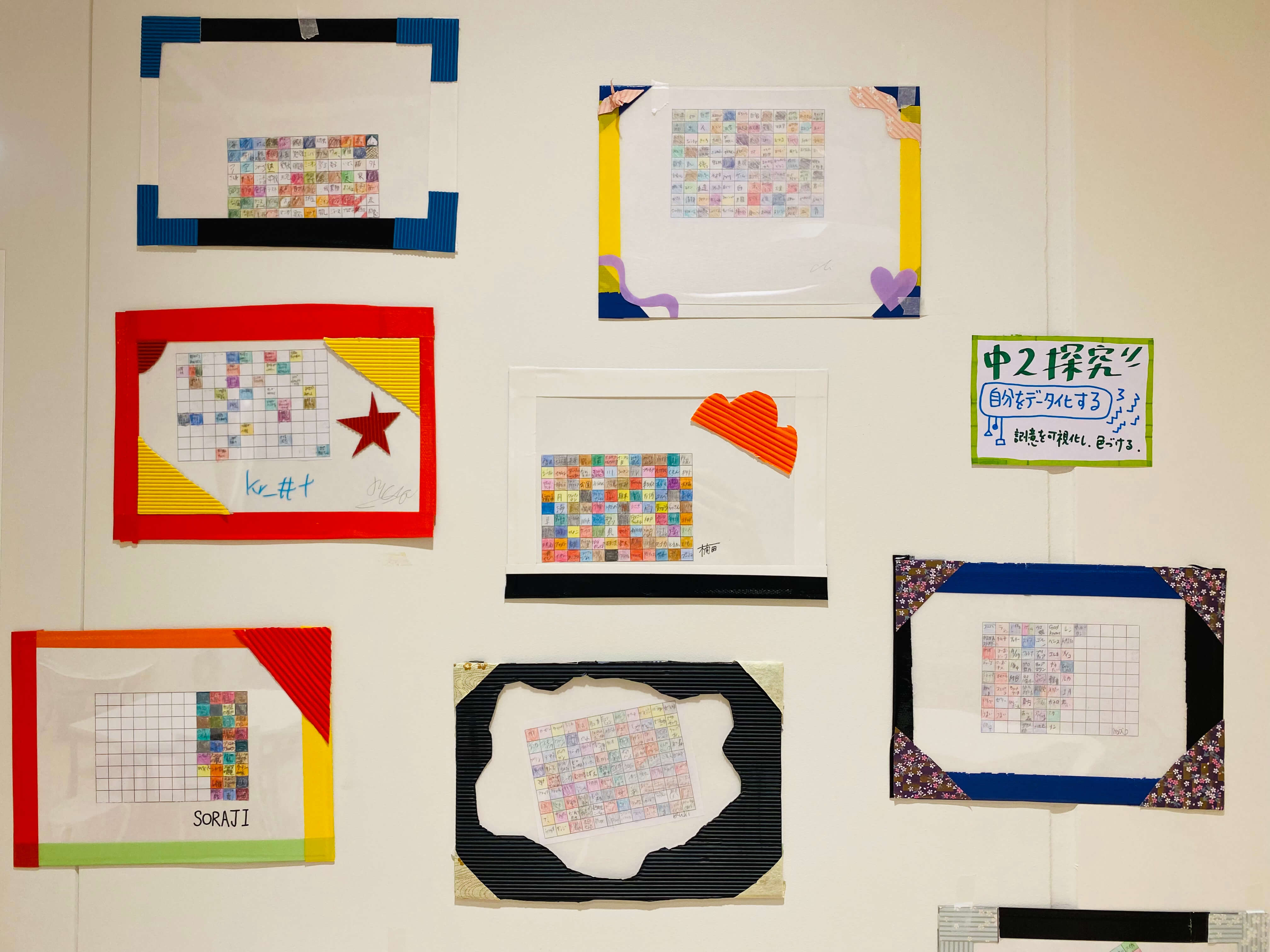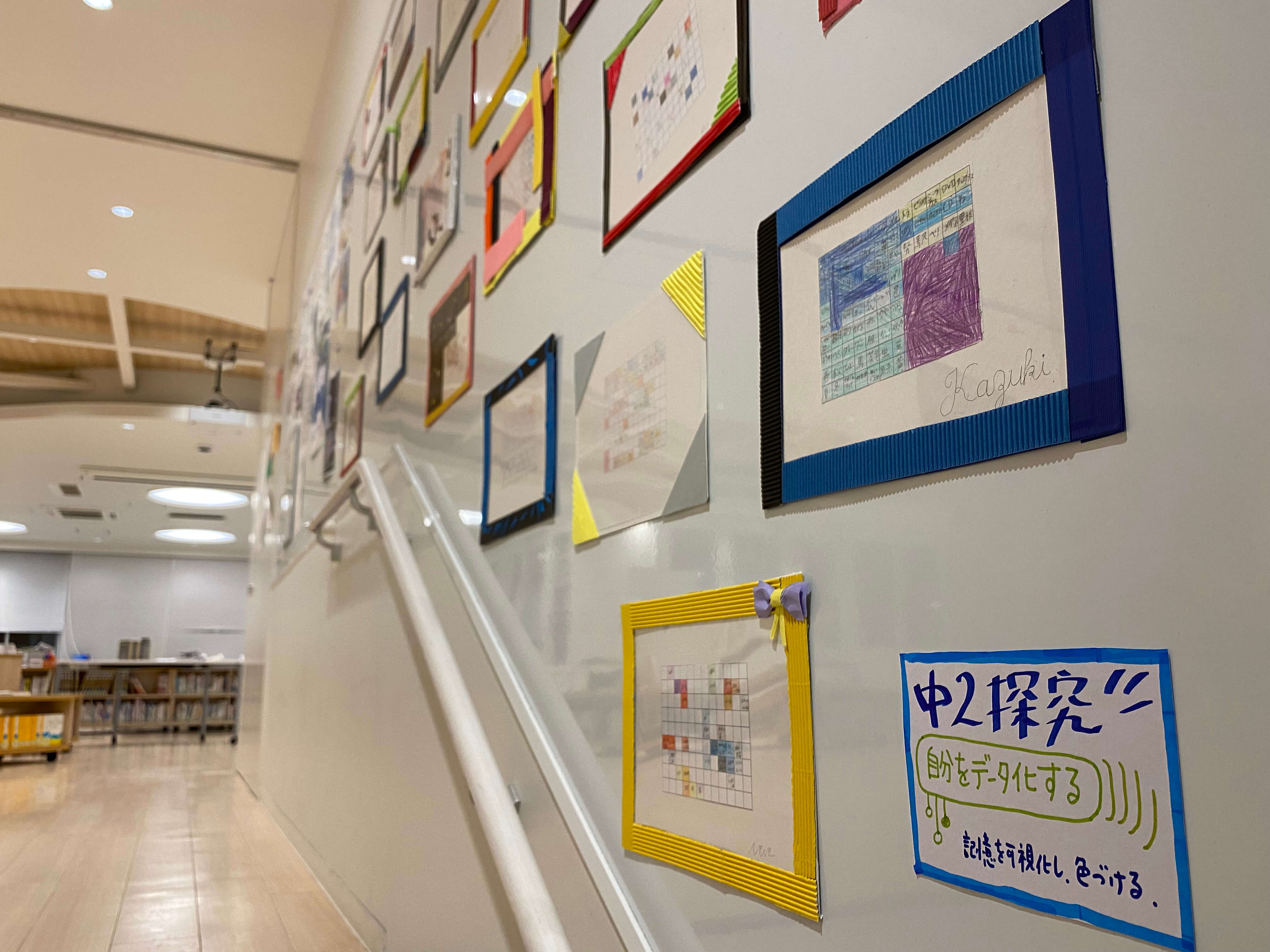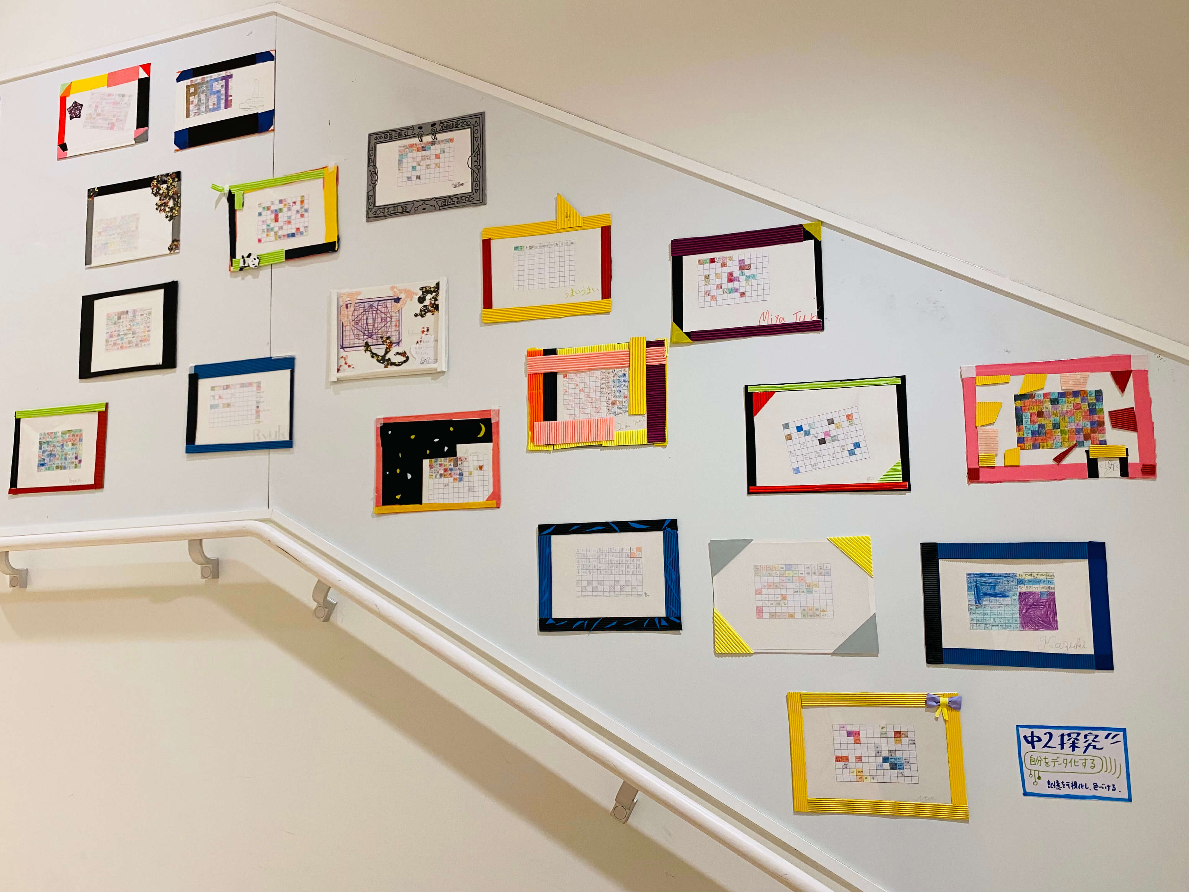 仕上げに額を作成。これだけでも1つのプロジェクトになり得るくらい。贅沢!!!自分のデータとにらめっこしながら、どんな額縁に入れようかなー。そして額に飾ると、データも変わってしまうような現象が。なんだか面白いですね。楽しい。校舎内に展示すると、白いフロアも彩られる。でも実はまだ続きがあるんです。。。次回乞うご期待!