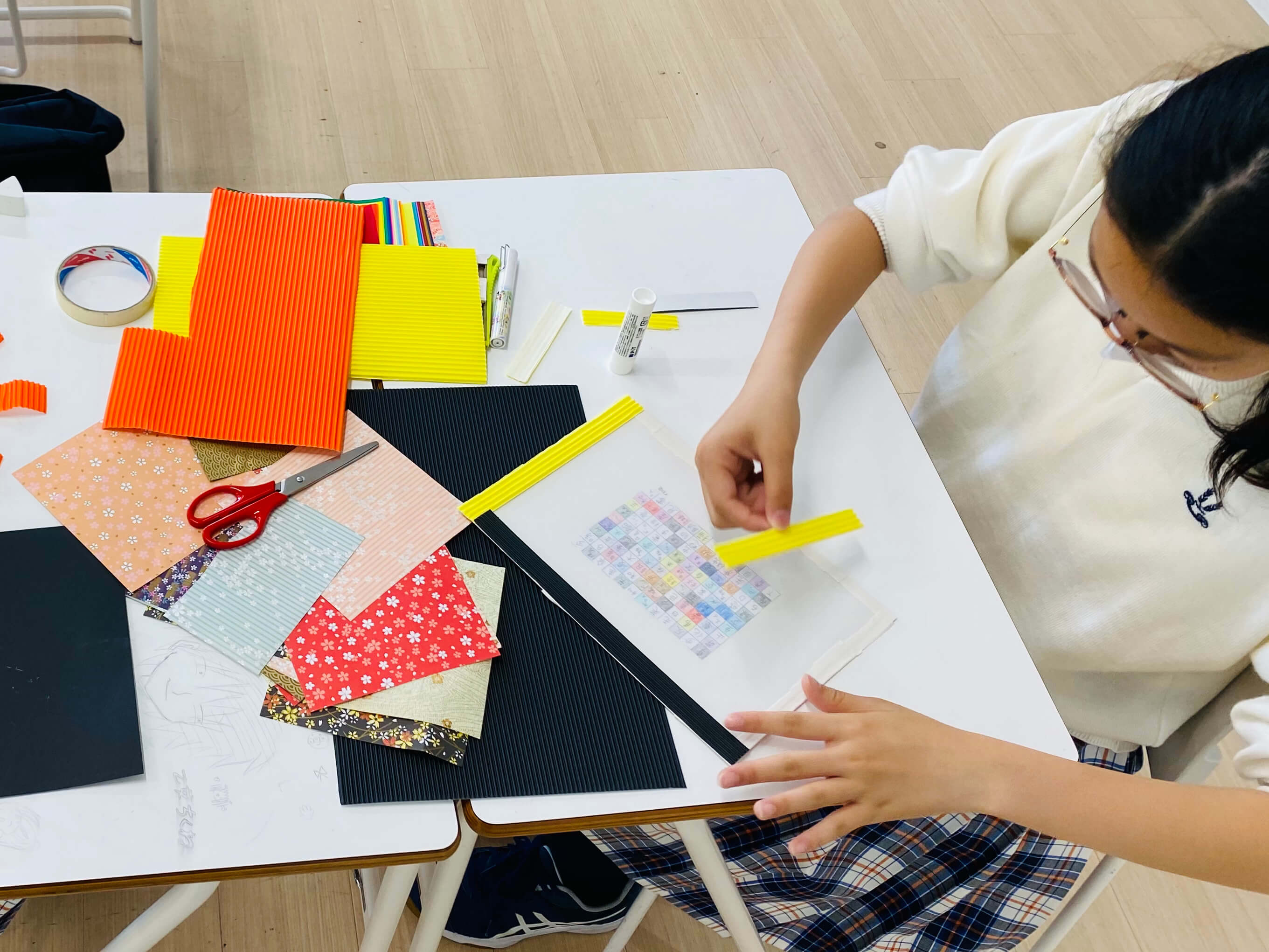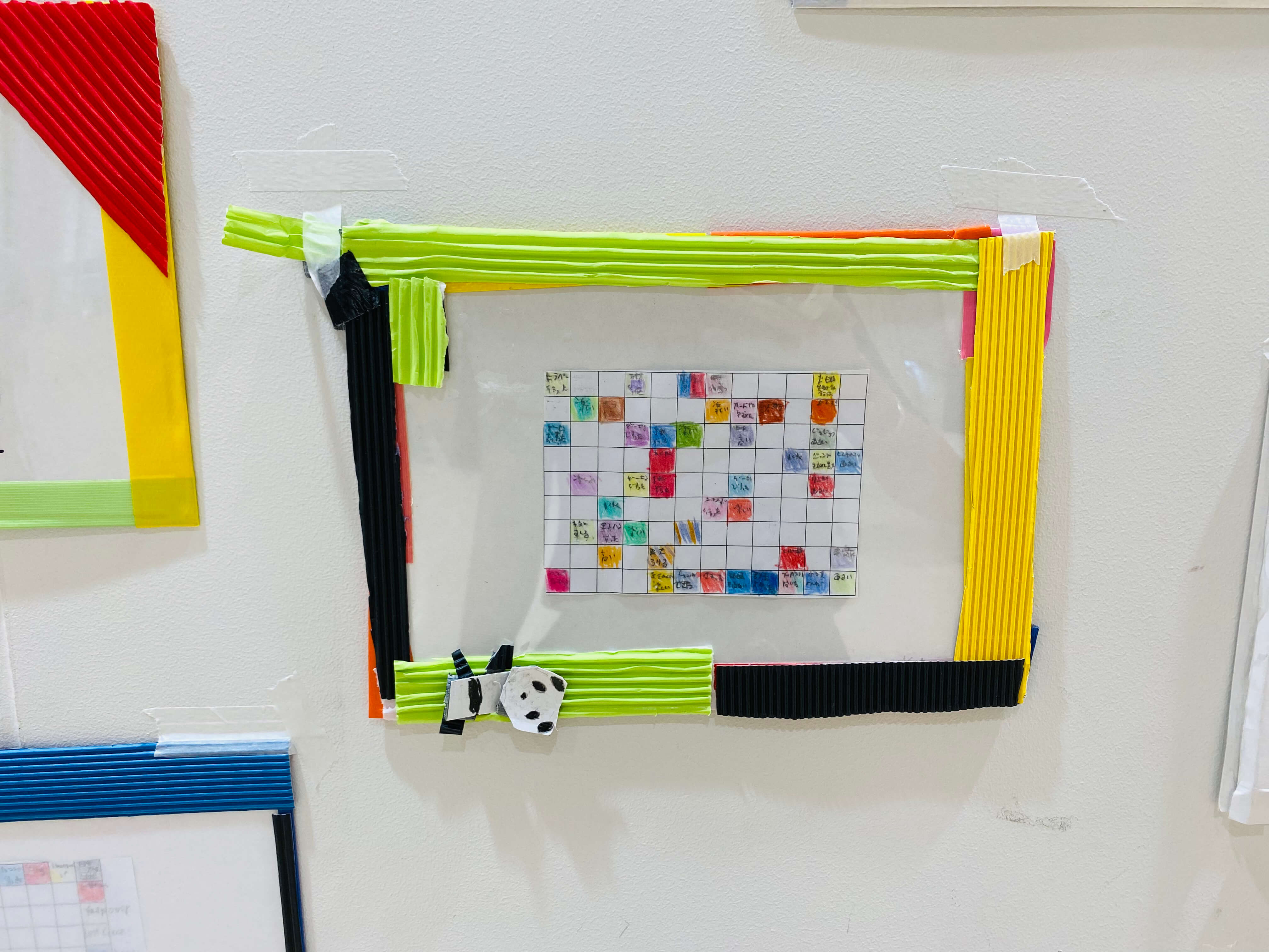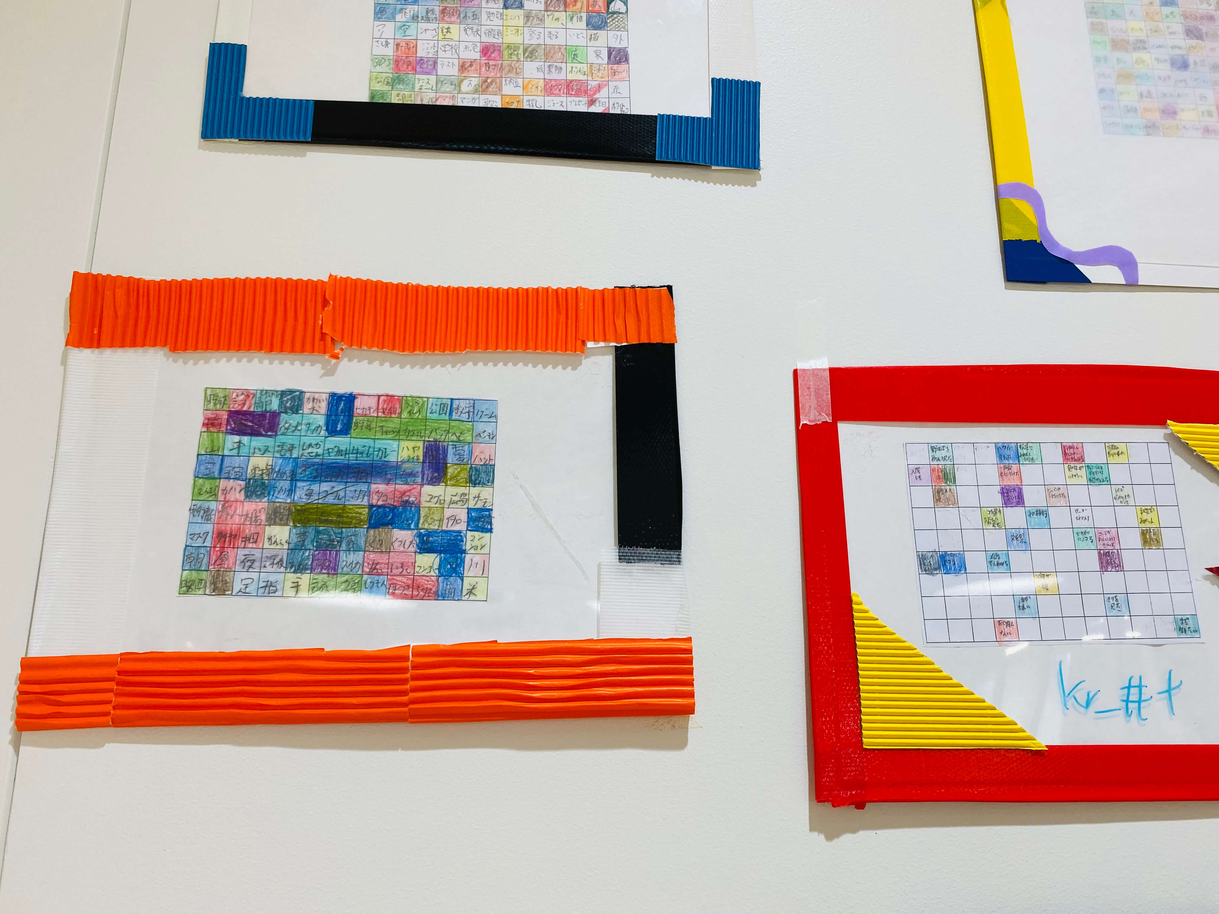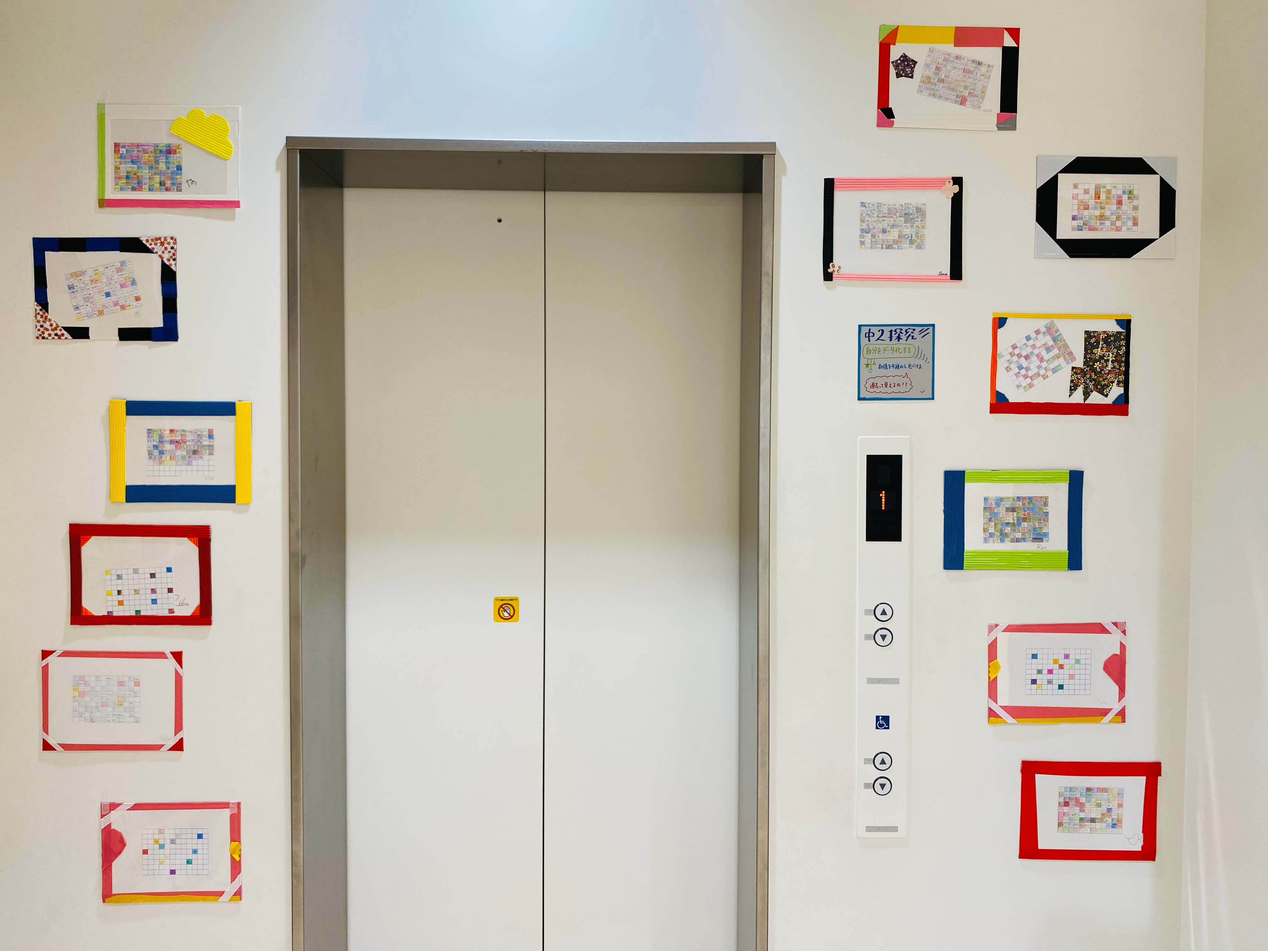 仕上げに額を作成。これだけでも1つのプロジェクトになり得るくらい。贅沢!!!自分のデータとにらめっこしながら、どんな額縁に入れようかなー。そして額に飾ると、データも変わってしまうような現象が。なんだか面白いですね。楽しい。校舎内に展示すると、白いフロアも彩られる。でも実はまだ続きがあるんです。。。次回乞うご期待!