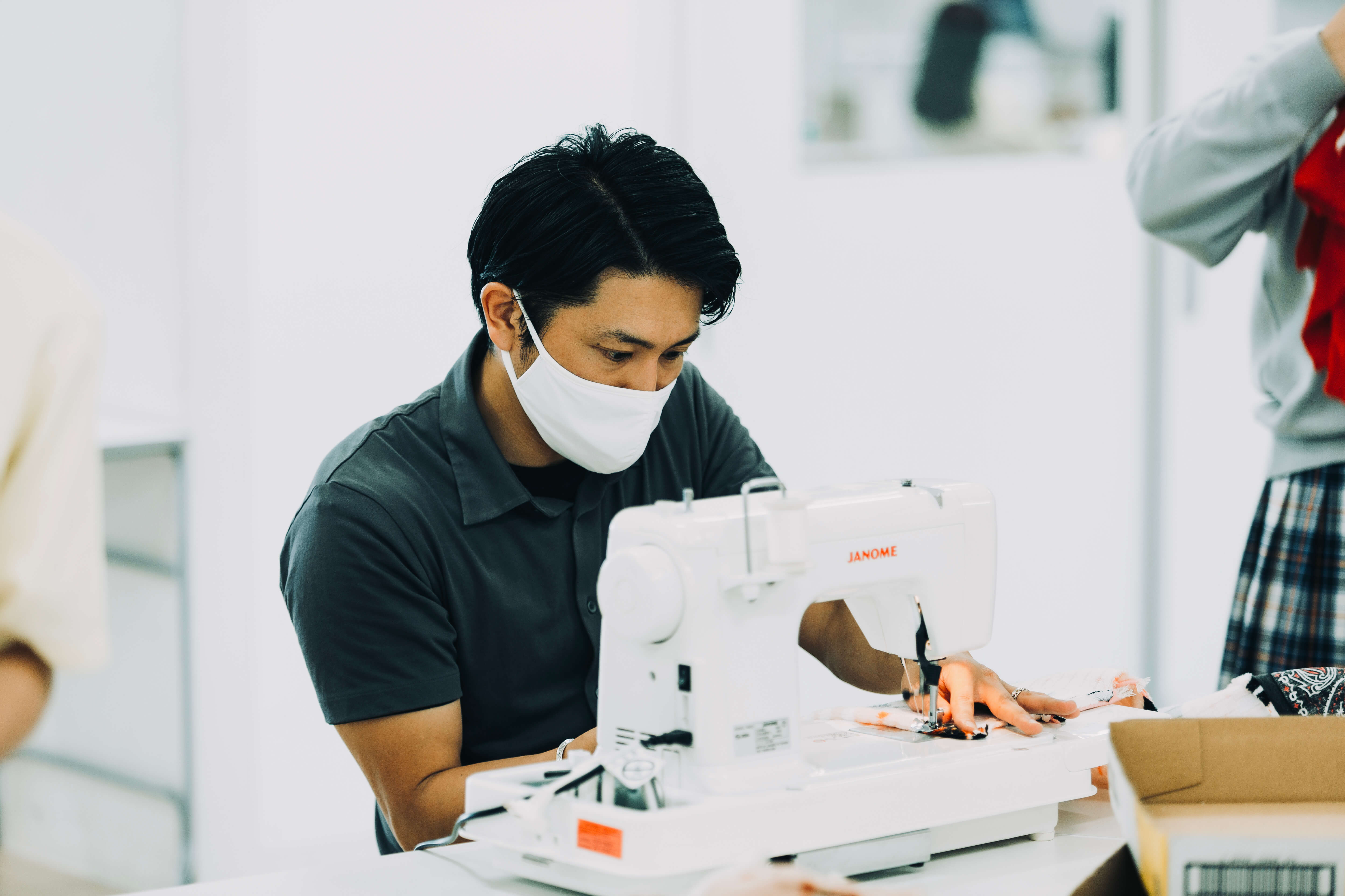 こちらもミシンに無我夢中。生徒に必死に寄り添う探究Driver、Tyson先生