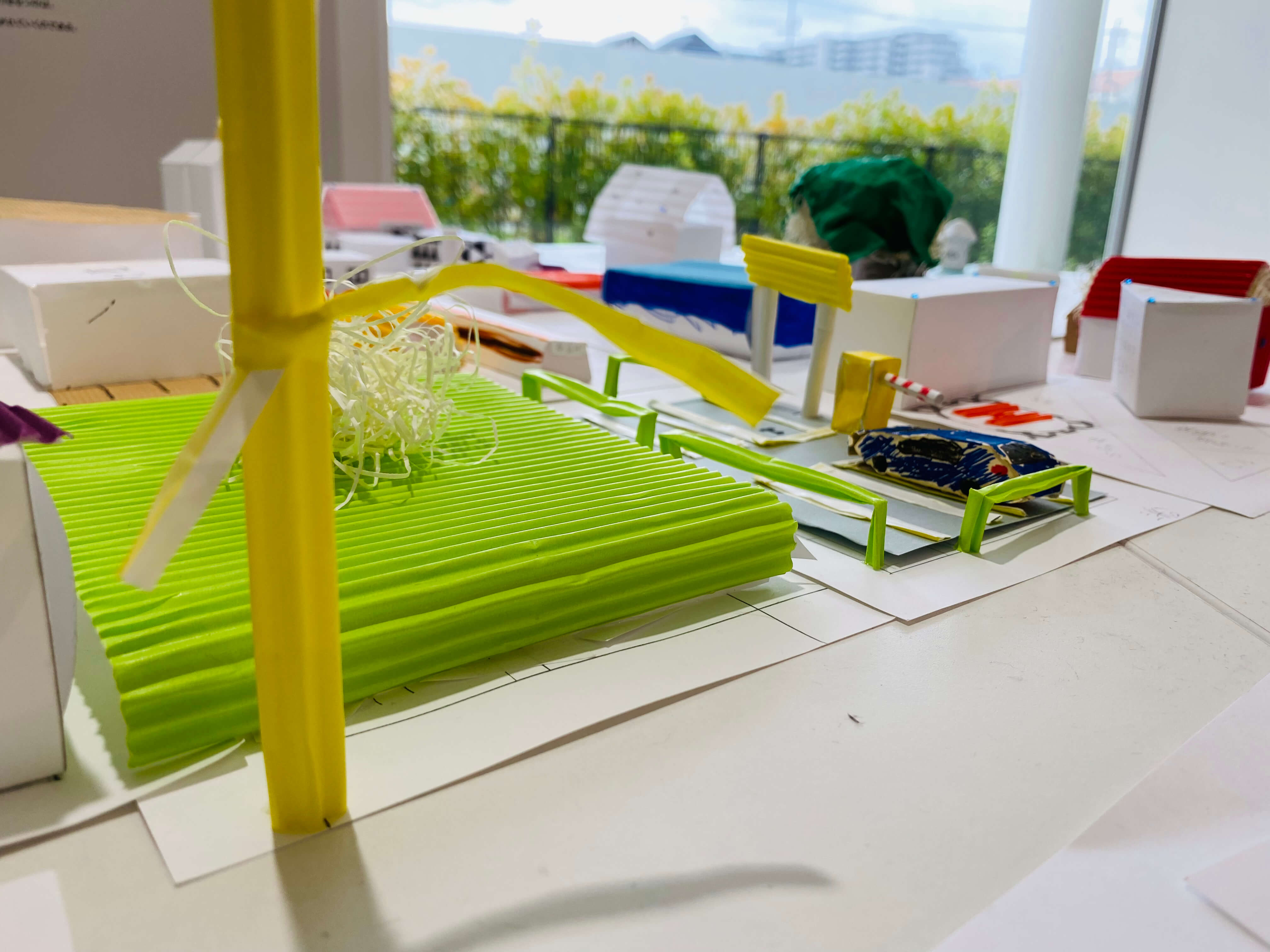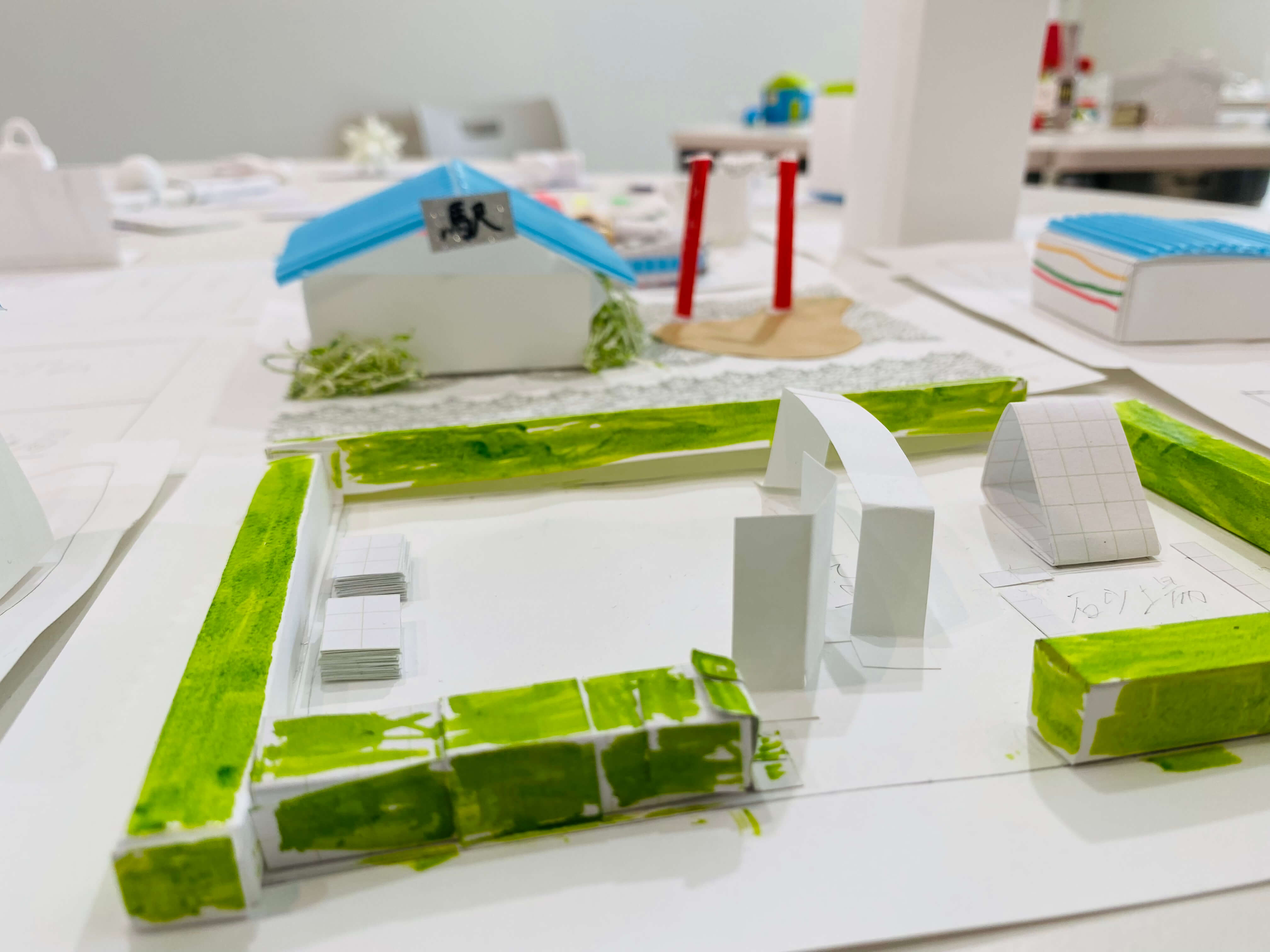 「自分のまち」を集合させることで「自分たちのまち」を作ってみました。思いがけないコラボに感動しながら、今の自分たちを覗き込んでいるかのようです。好き好きに、いろんな角度で写真を撮ると、さらに違う見え方が。周りに生かされる感覚も味わえたような気もします。ミライへの足固め、着実に前進中。