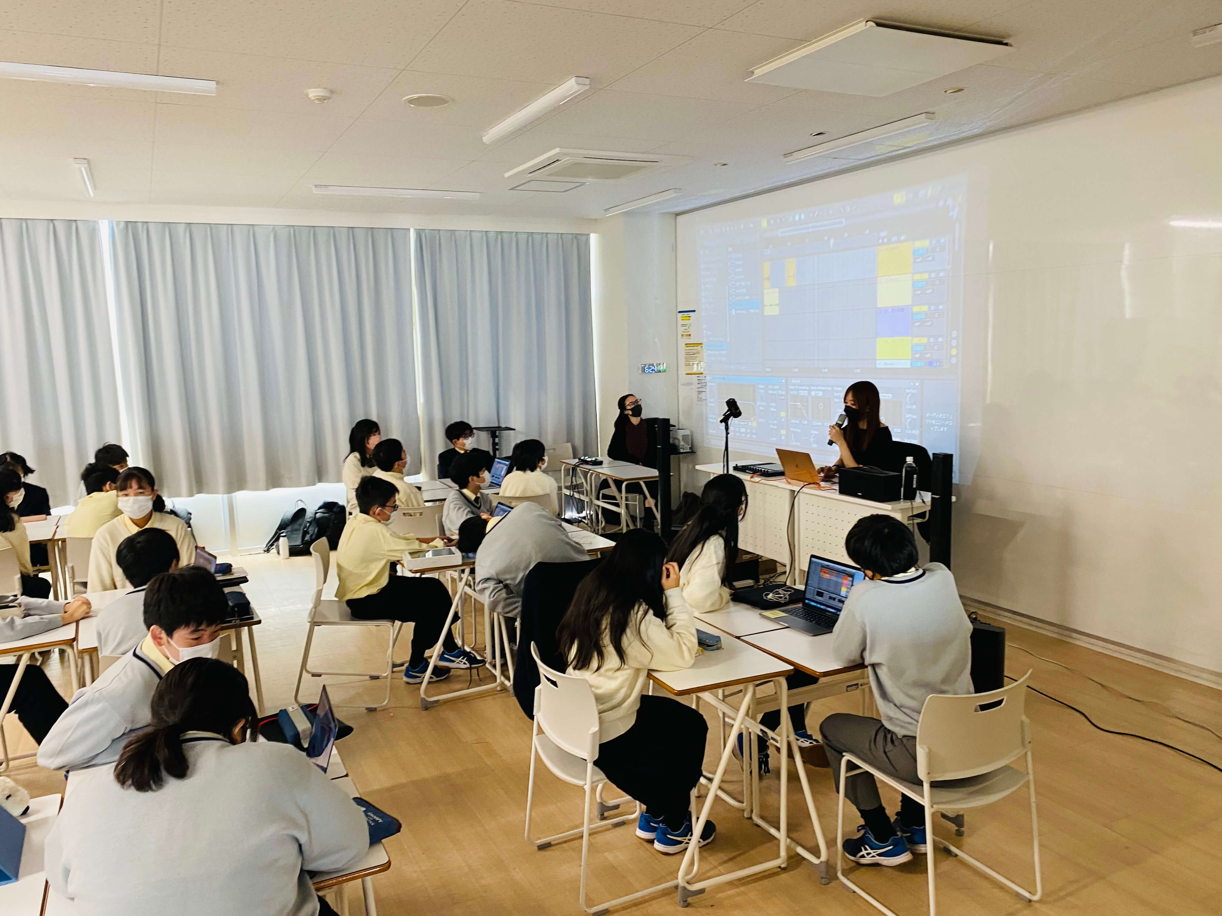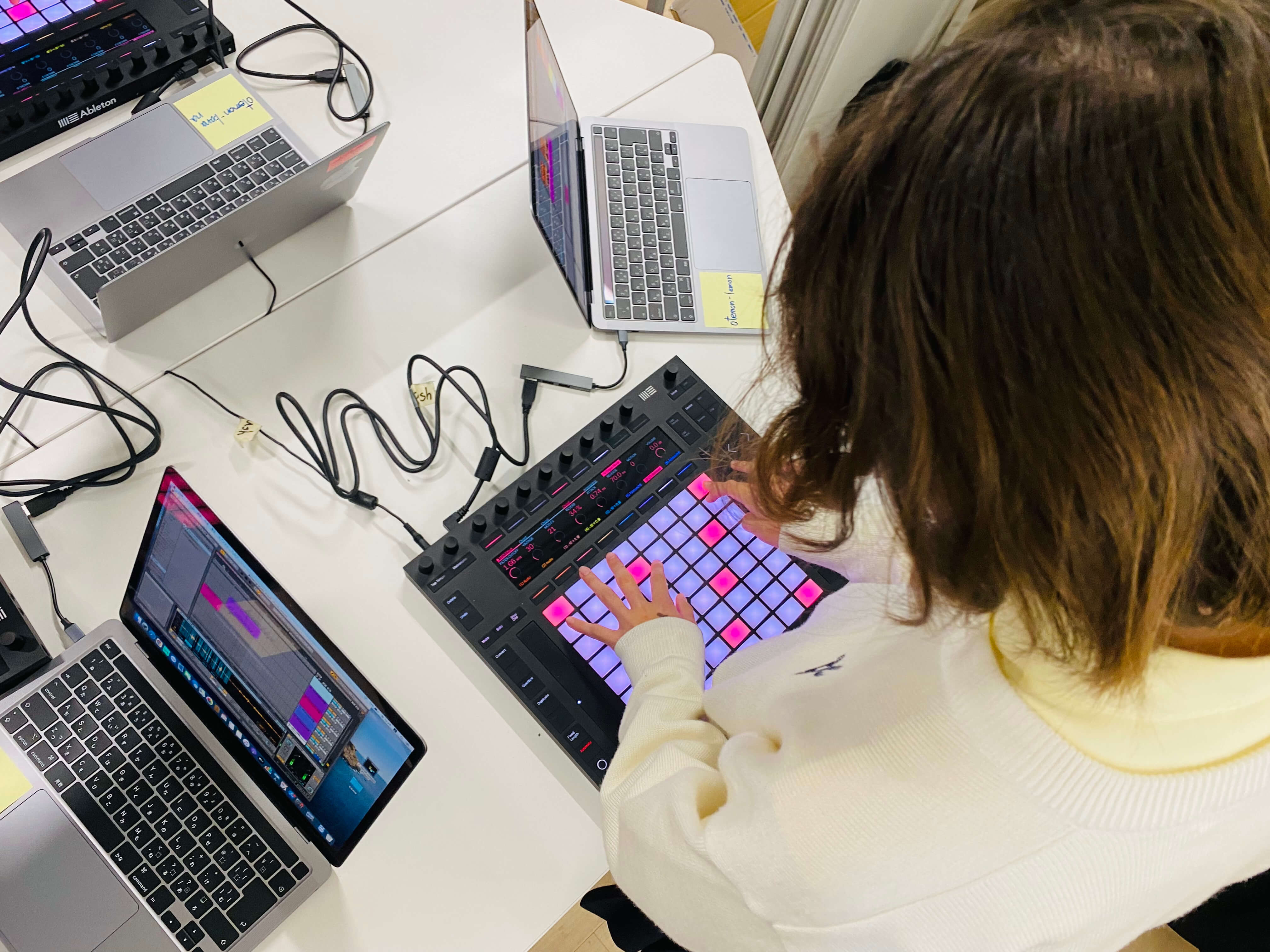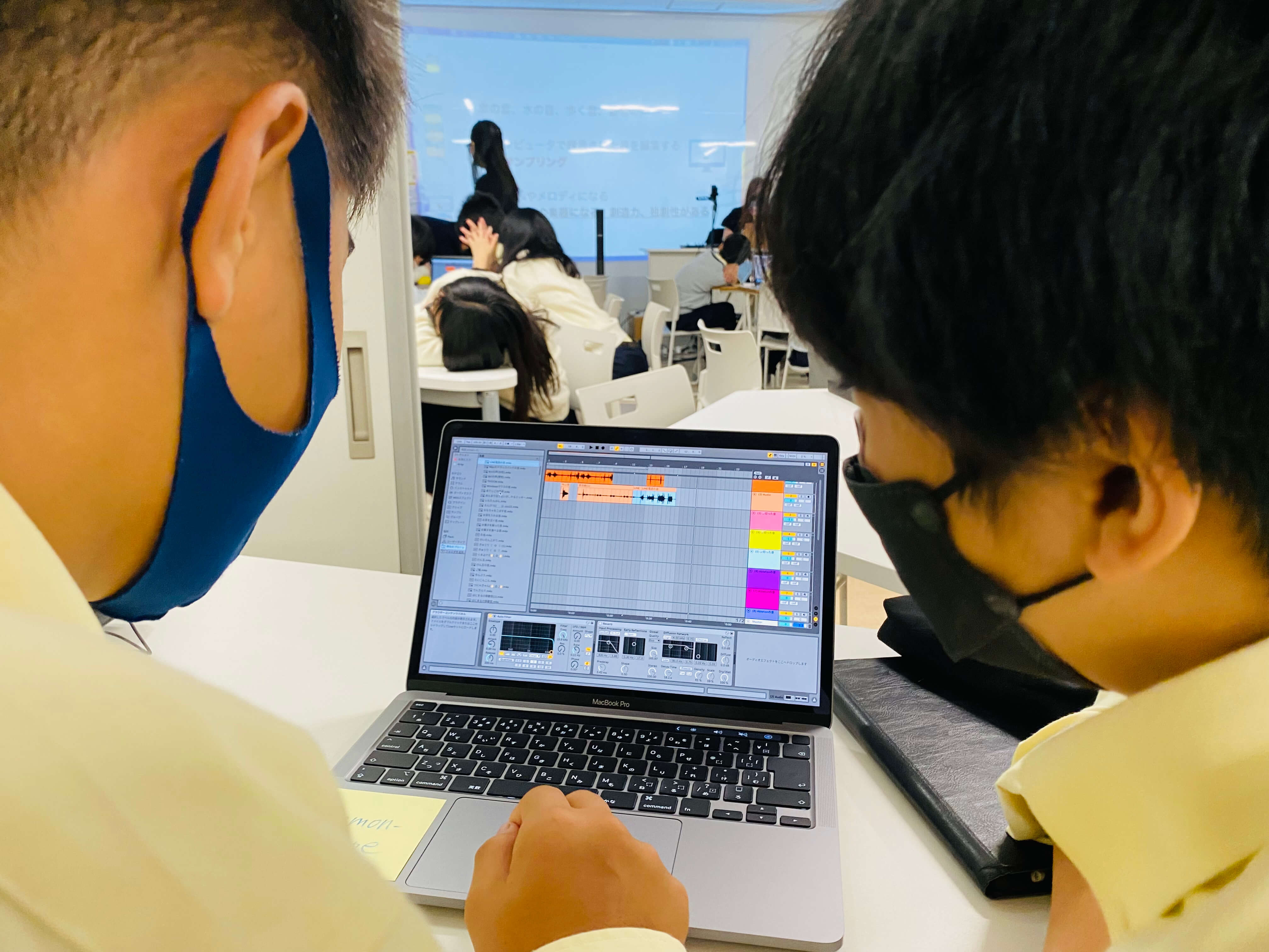 Abletonの認定トレーナのあやこさんに、今回の授業を担当していただいています!AbletonのDAWである「Live」の操作や、楽曲制作用インストゥルメント「Push」の使い方など、プロの指導で生徒たちはDTMに挑戦です!全て計算された入念な準備に脱帽。さすがです。