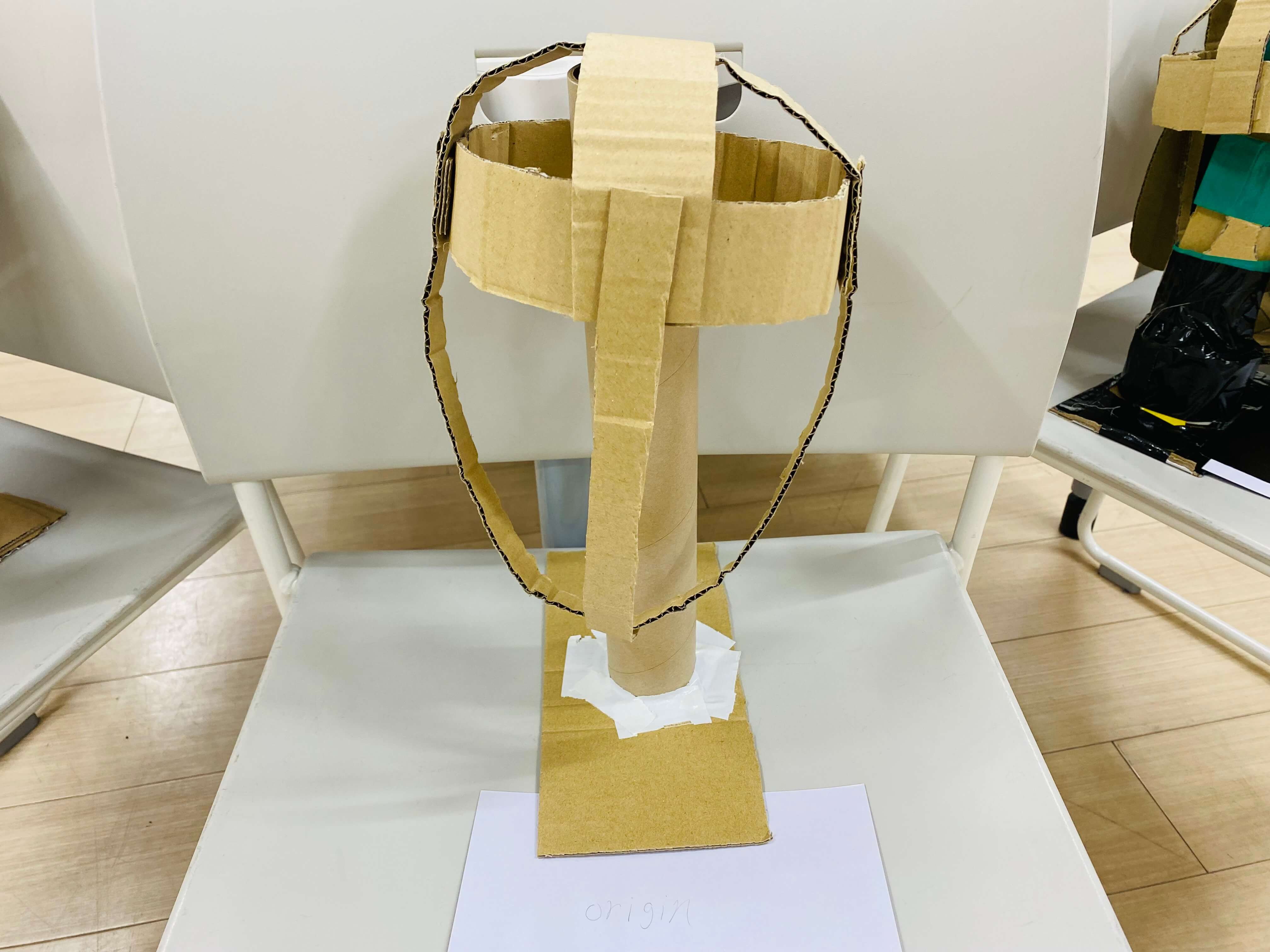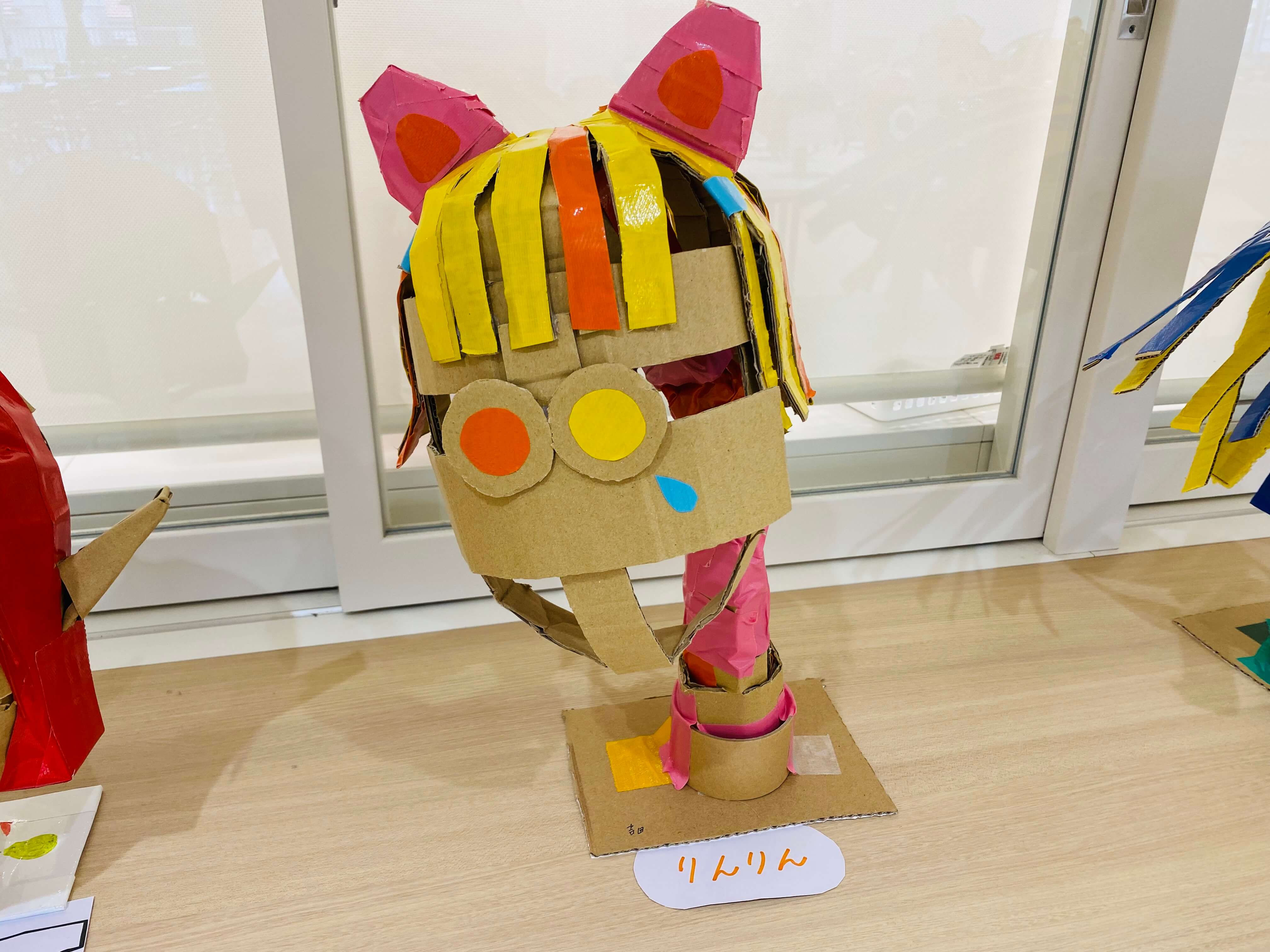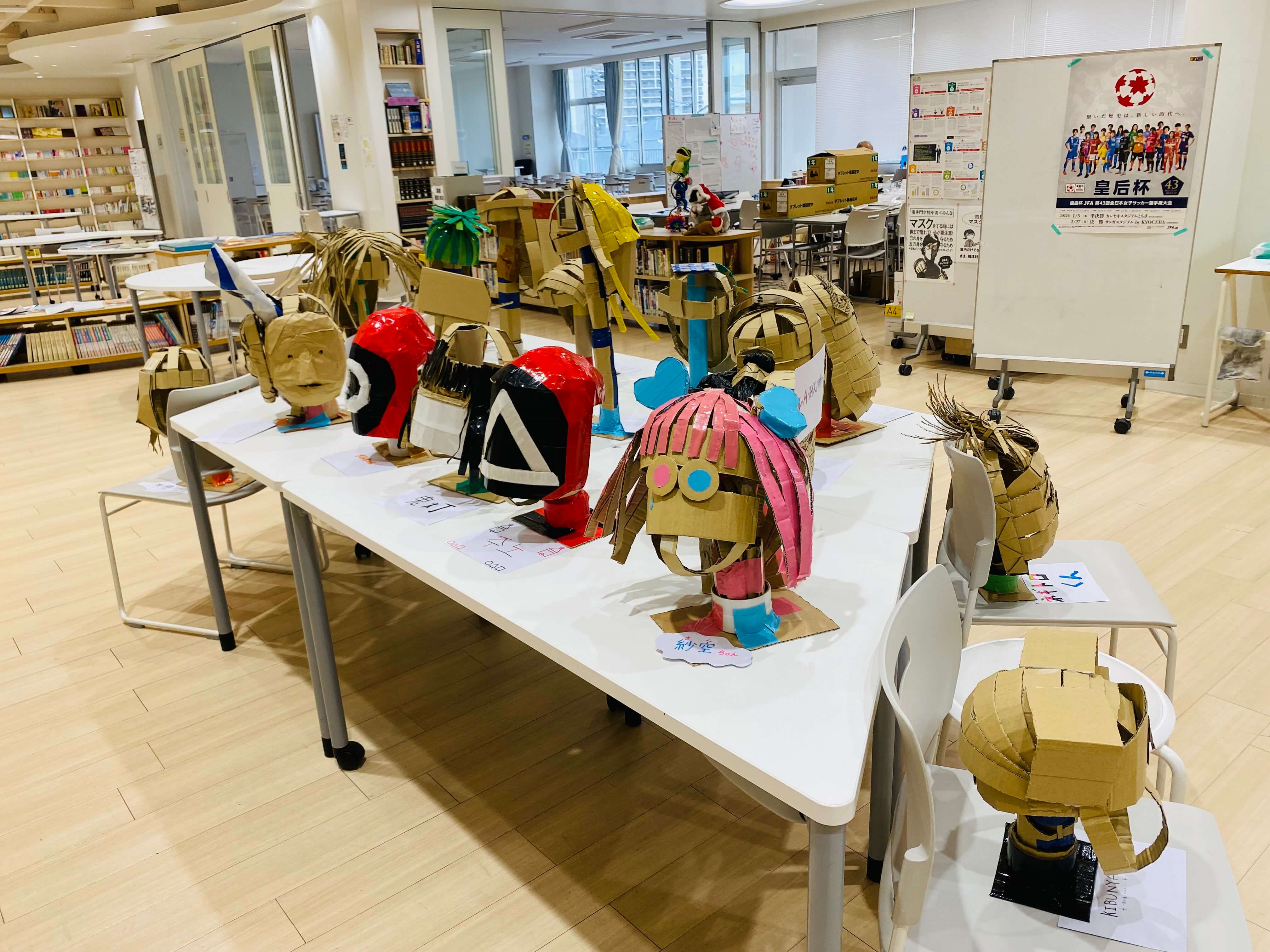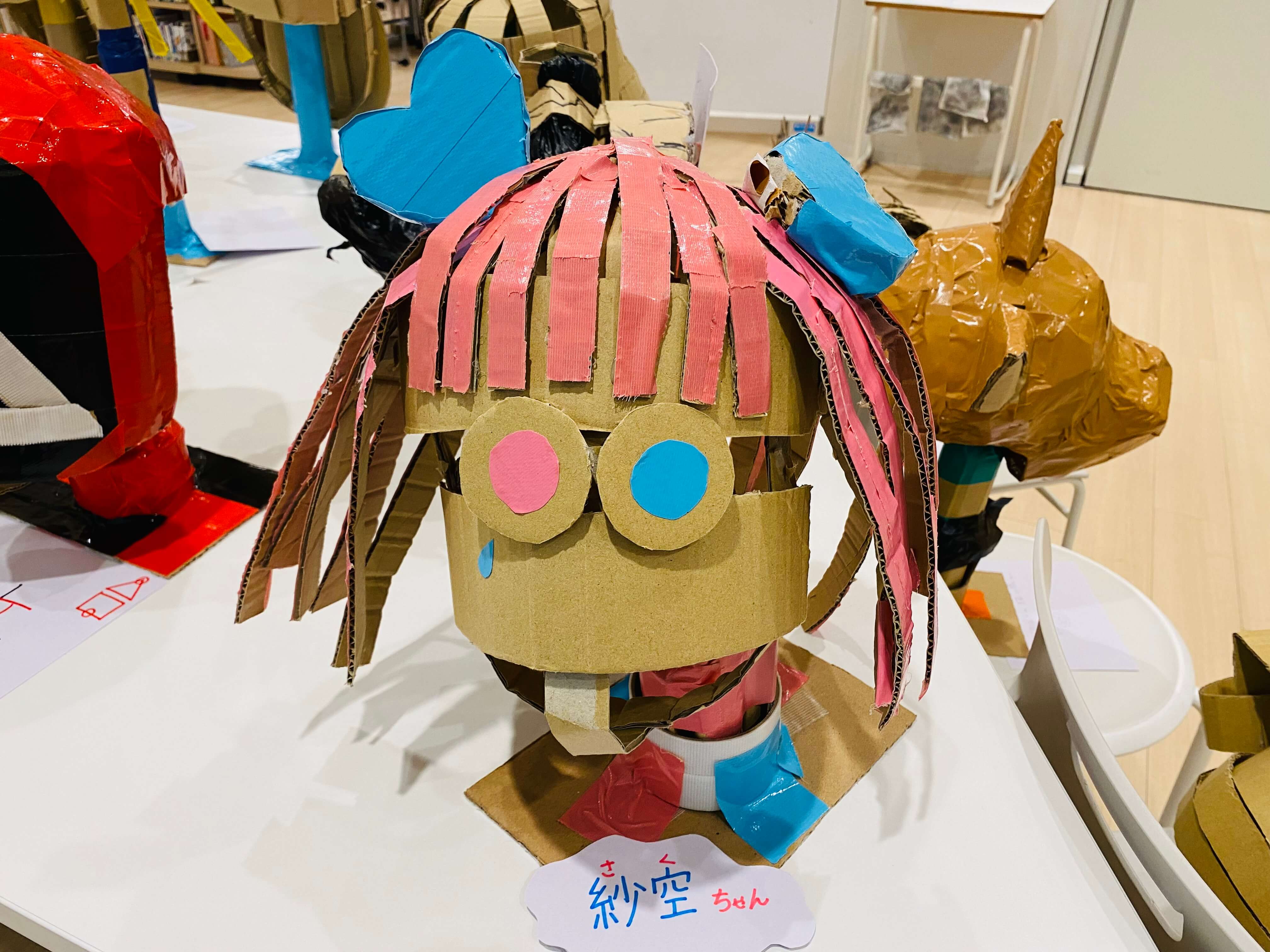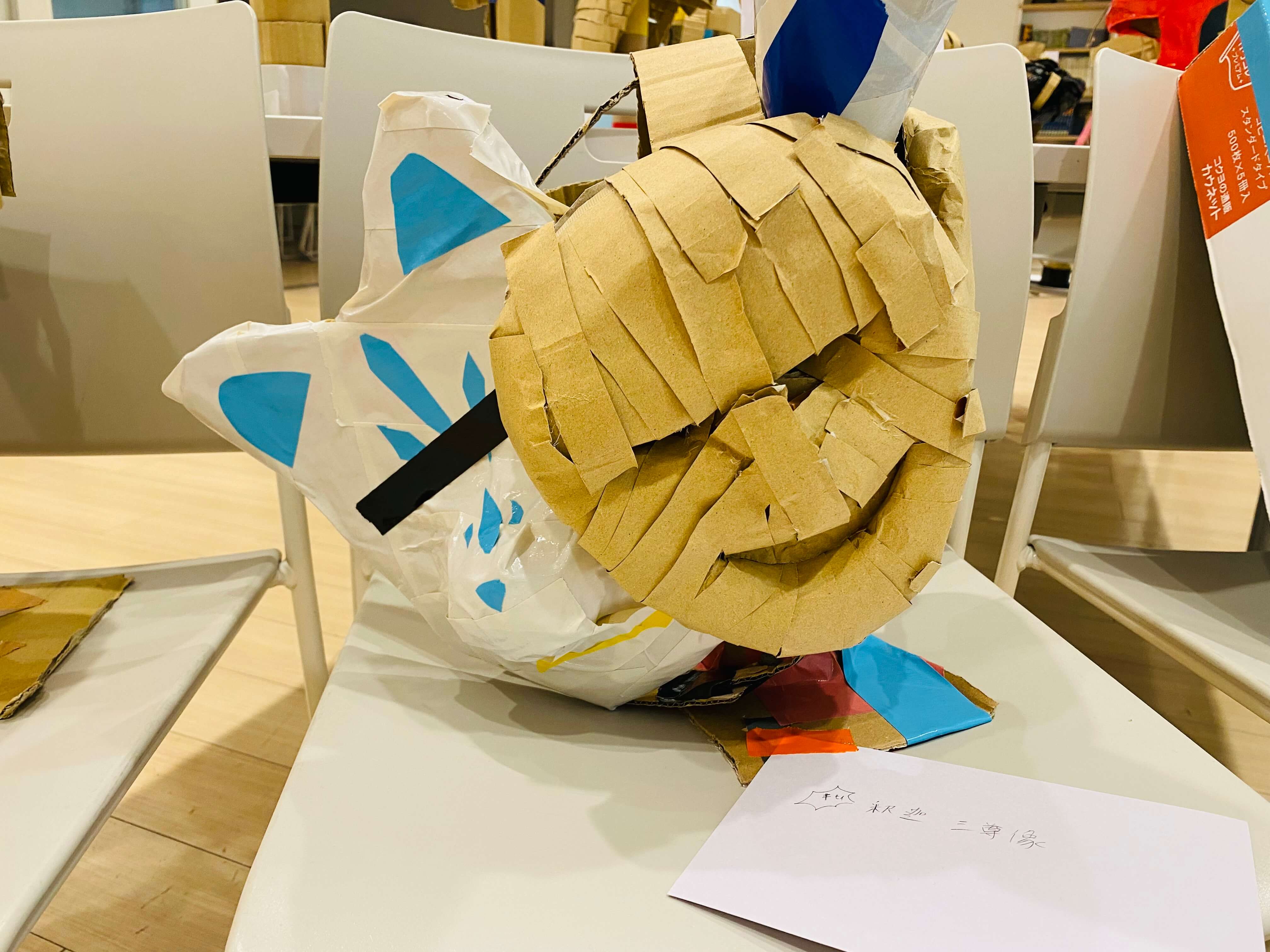 - 最初の設計図とは、全く違う方向に進んでいるけれど、悪い方向ではないのでよかったかなと思う。みんなのお面をみていると同じような材料でもみんな作っているものが全然違うくて面白いなと思った。