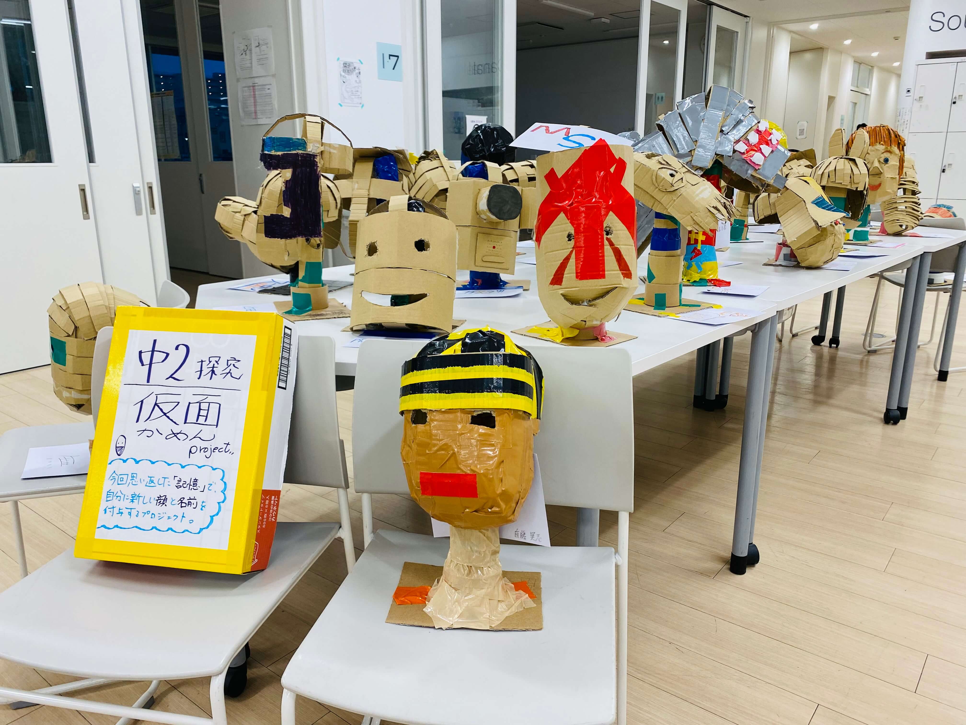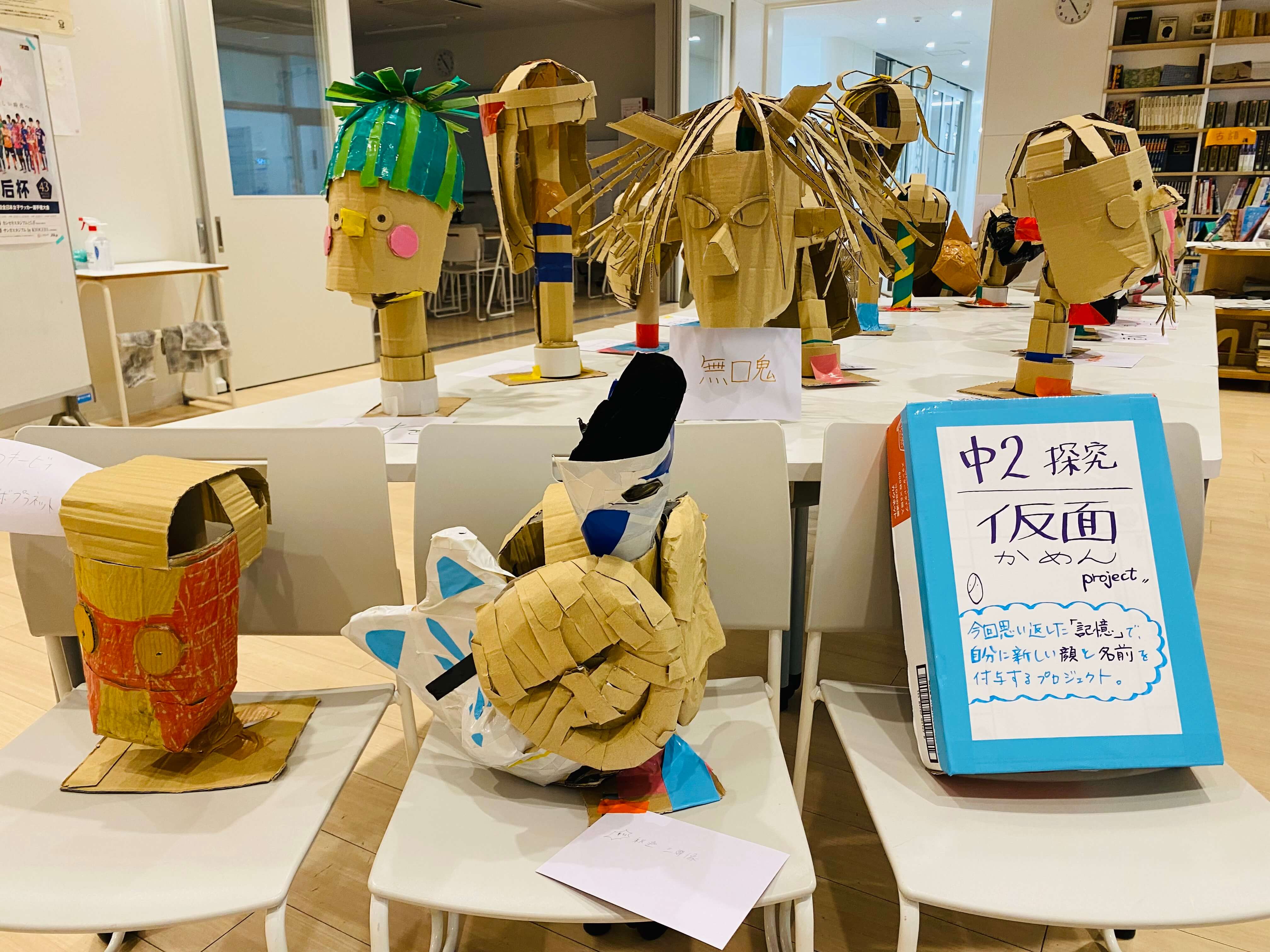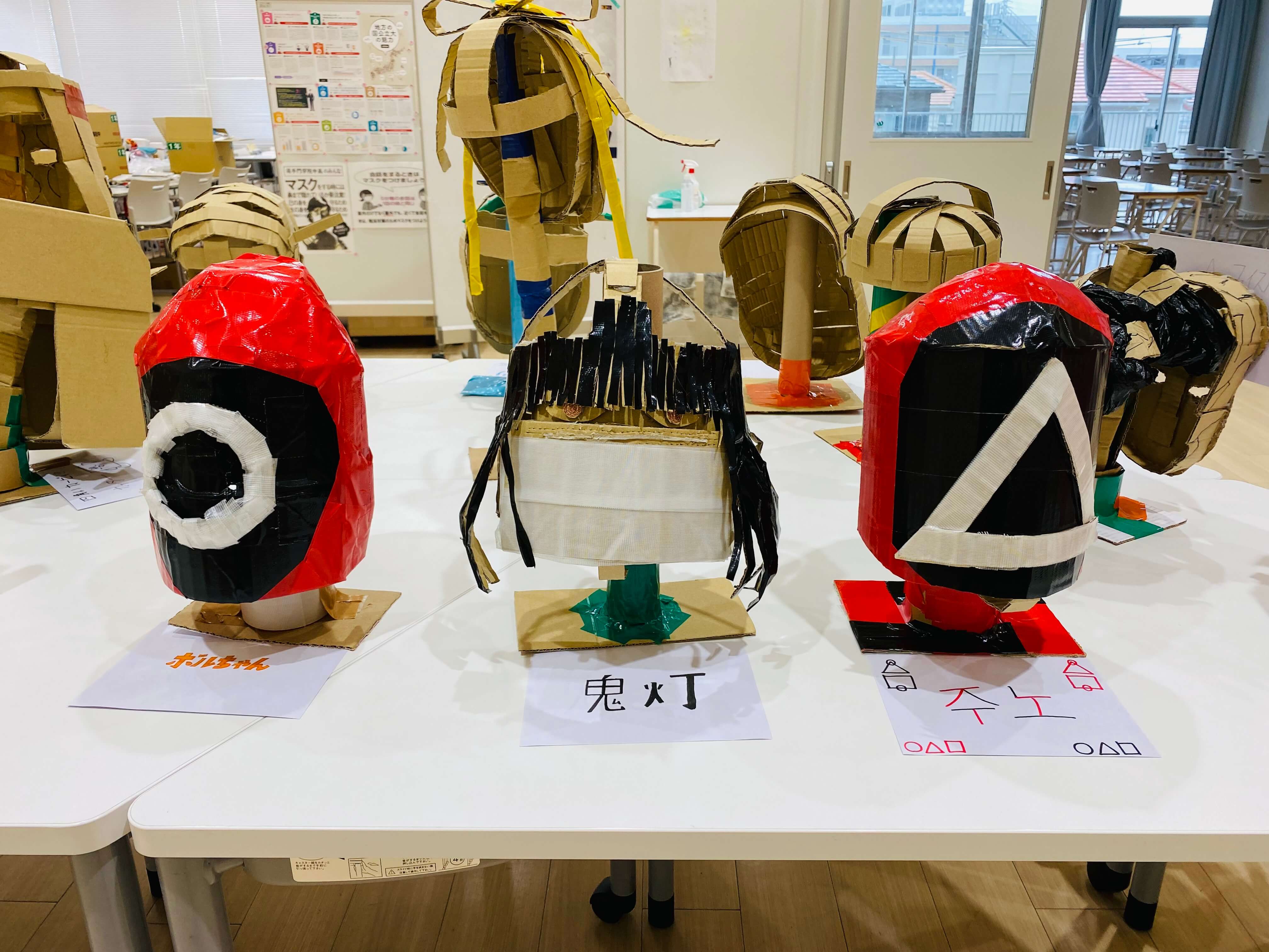 - 友達とやると、自分が思っていたお面の感じとは異なった新しいお面が生み出せたので良かったです。自分が考えた、お面のパーツの作り方以外に他の人の作り方を知れて成長できた気がしました。