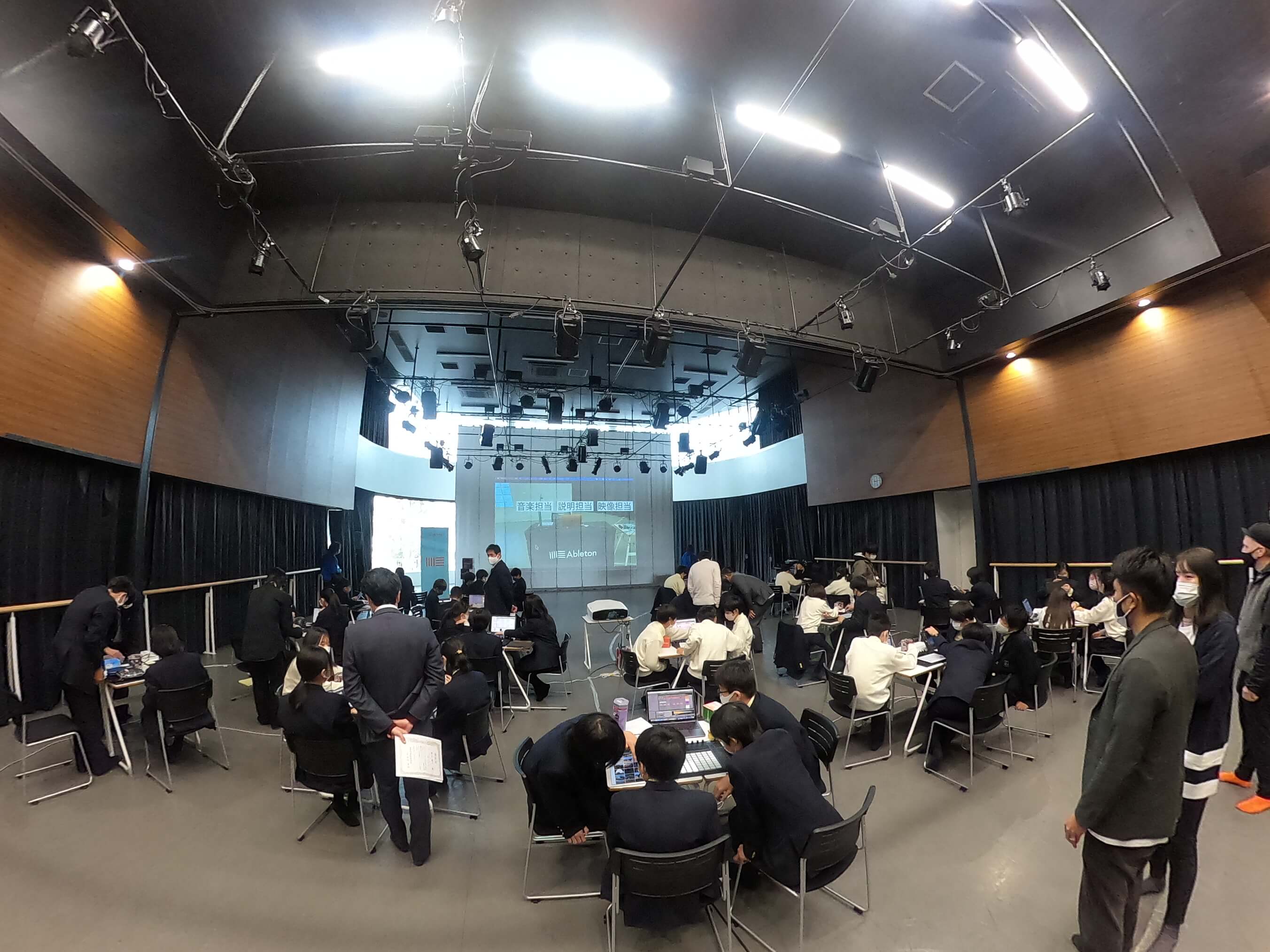 10月にスタートし、なんと12月の演奏発表まで2ヶ月をかけたプロジェクトとなりました。授業では「聴覚から自分を知る」ための体験として、聴覚だけに集中する環境を作り身近な音を聴き直したり、今の感情から流れてくる音を表現したりと試行錯誤。そして、音を組み合わせて音楽にしてみる。この音楽にしてみるプロセス、そして演奏発表でAbletonの力を借りたわけです。講師はもちろん認定トレーナーの岡村綾子さん!!!