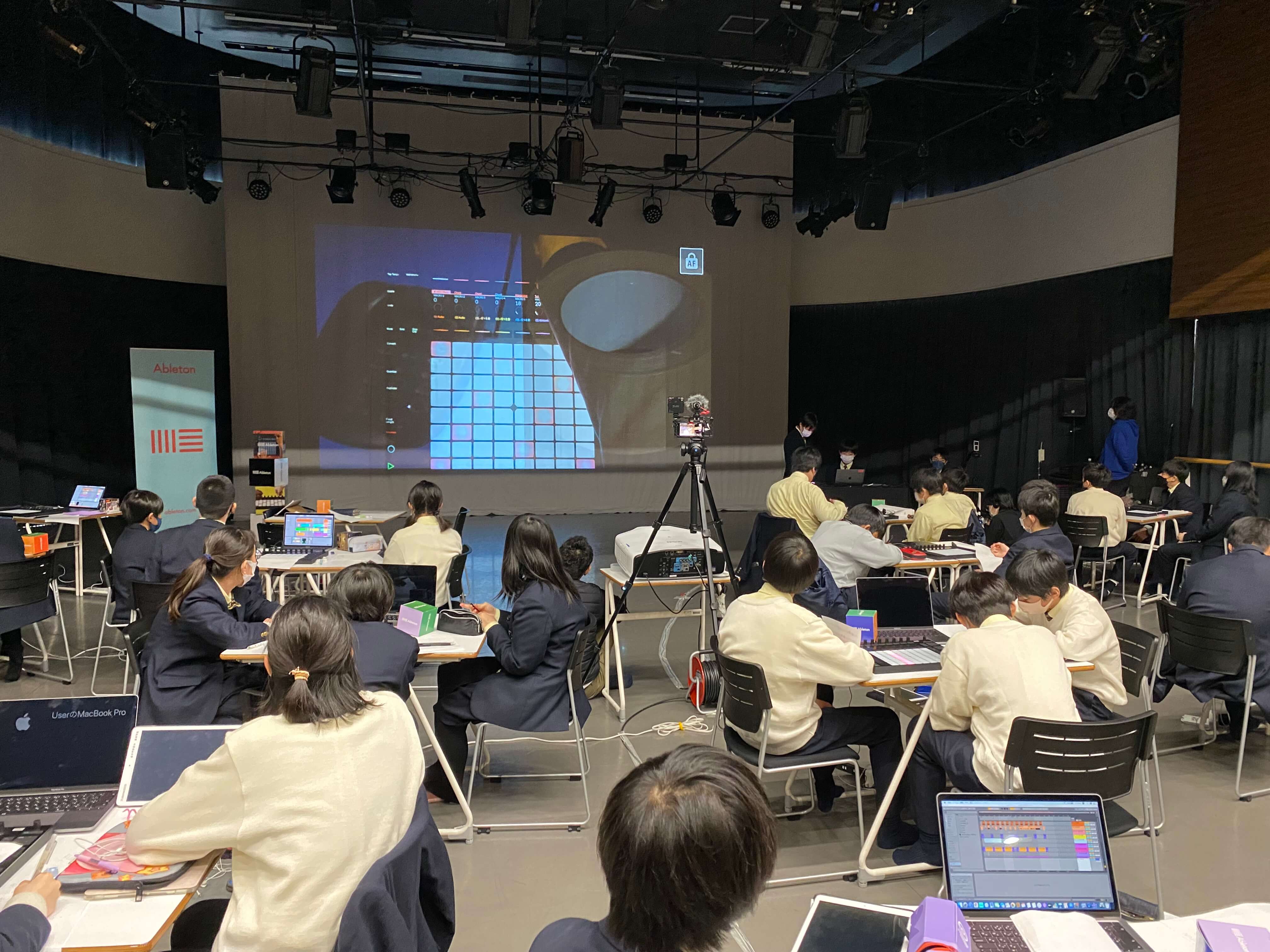 「五感」をテーマに授業を進めている中学1年生。2学期は「聴覚」に焦点を当て、自分の音楽を制作するプロジェクトをAbletonとコラボで開催!身近な音を捉え直し、素直に感じることを表現しながら、それらの音をAbletonのDAWであるLiveを通じて音楽に、そして楽曲制作用インストゥルメントPushで演奏を。今回は演奏会の様子を中心にレポートします!
