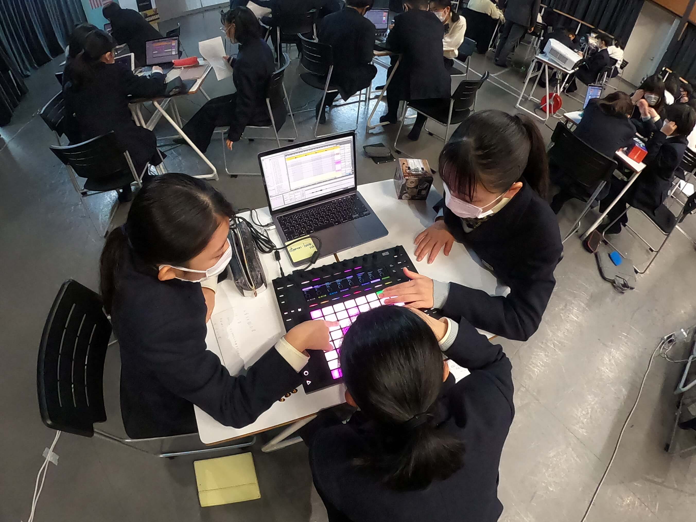 事前の先生に対するトレーニング、第1回目の授業実施、生徒用Liveプログラム作成、途中経過のサポート、演奏発表。認定トレーナーの綾子さん、Abletonのみなさんに、学校に足を運んでもらったのは2回ですが、2ヶ月以上に渡って伴走していただきました。興味がある方はぜひ連絡ください!