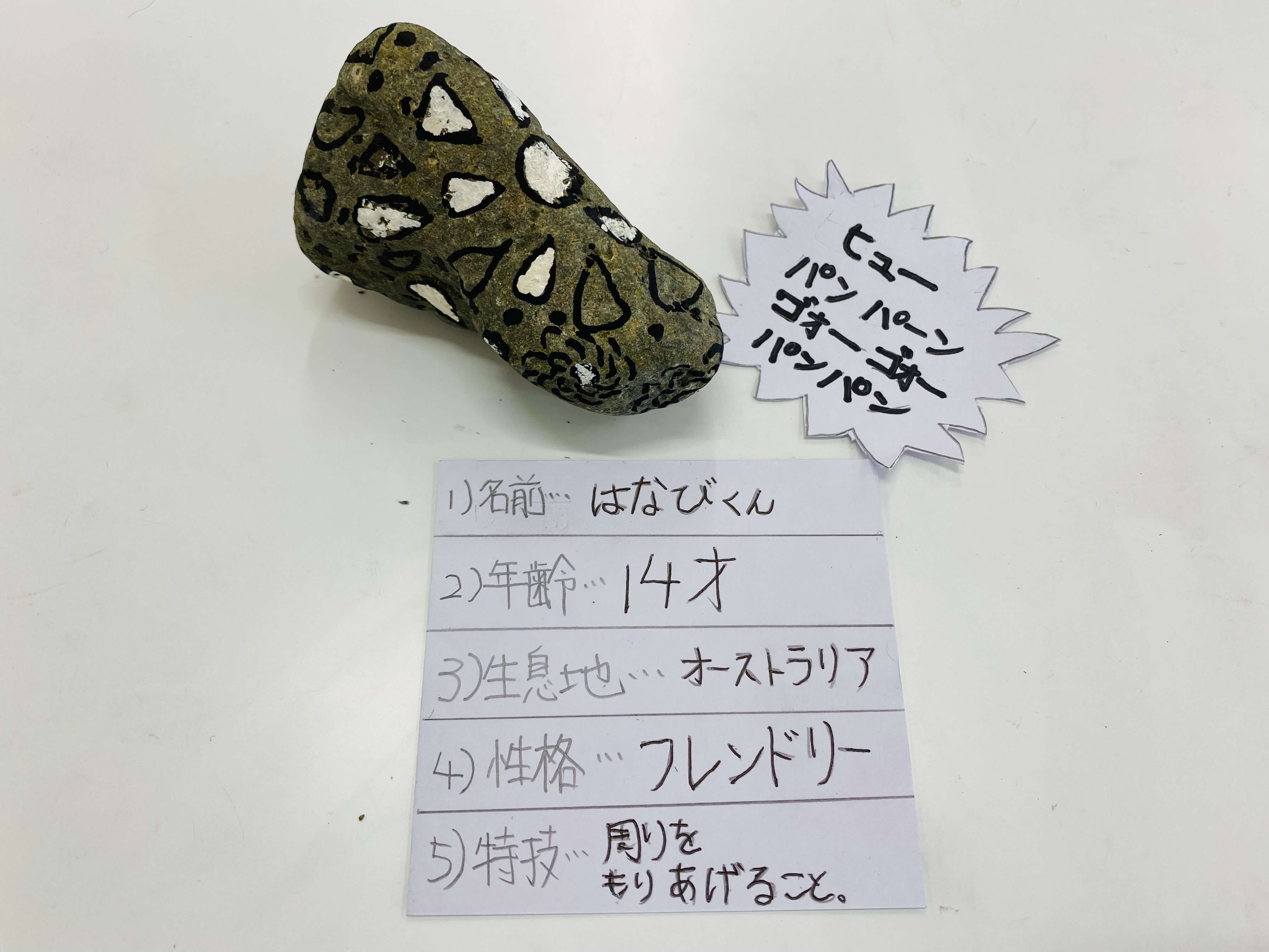 その選択の先に仕上がった石作品を眺め、キャプションを作成しました。その石から出る音、名前、生息地、性格など、「見る」ことから派生する情報を楽しく考えてみる。そしてみんなの作品を鑑賞しました。今回もいろんな気づきがありましたよ!