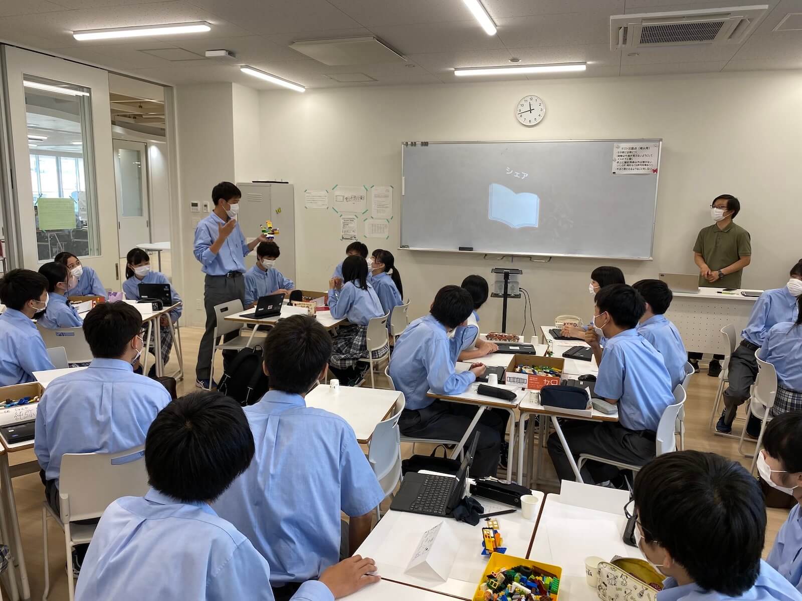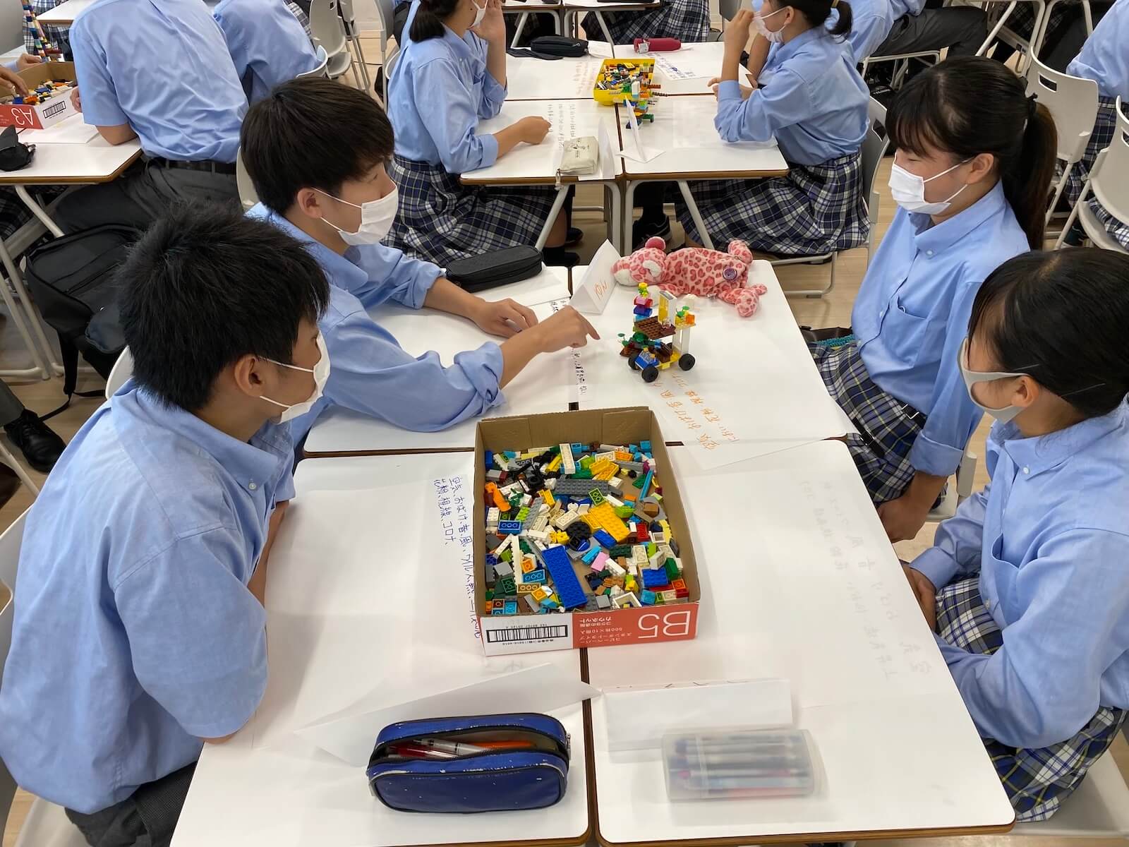 ブレストでは、自分にしか出てこない発想、人からもらえる発想へとその広がりを体感しながら視点を獲得していきます。次に、「見えないもの」をレゴで見える化し、それに意味づけをしていきます。自分なりに、人からの質問やフィードバックを受けて、潜在化していた自分の視点にも気付く。最後にそれを協働で組合せ、創造したものへ新たな価値を吹き込む、という流れです。プロジェクト学習をぎゅっと経験し、なんとなく探究のイメージを掴んでもらえたかなと思います。いい振り返りをしてくれていました。
