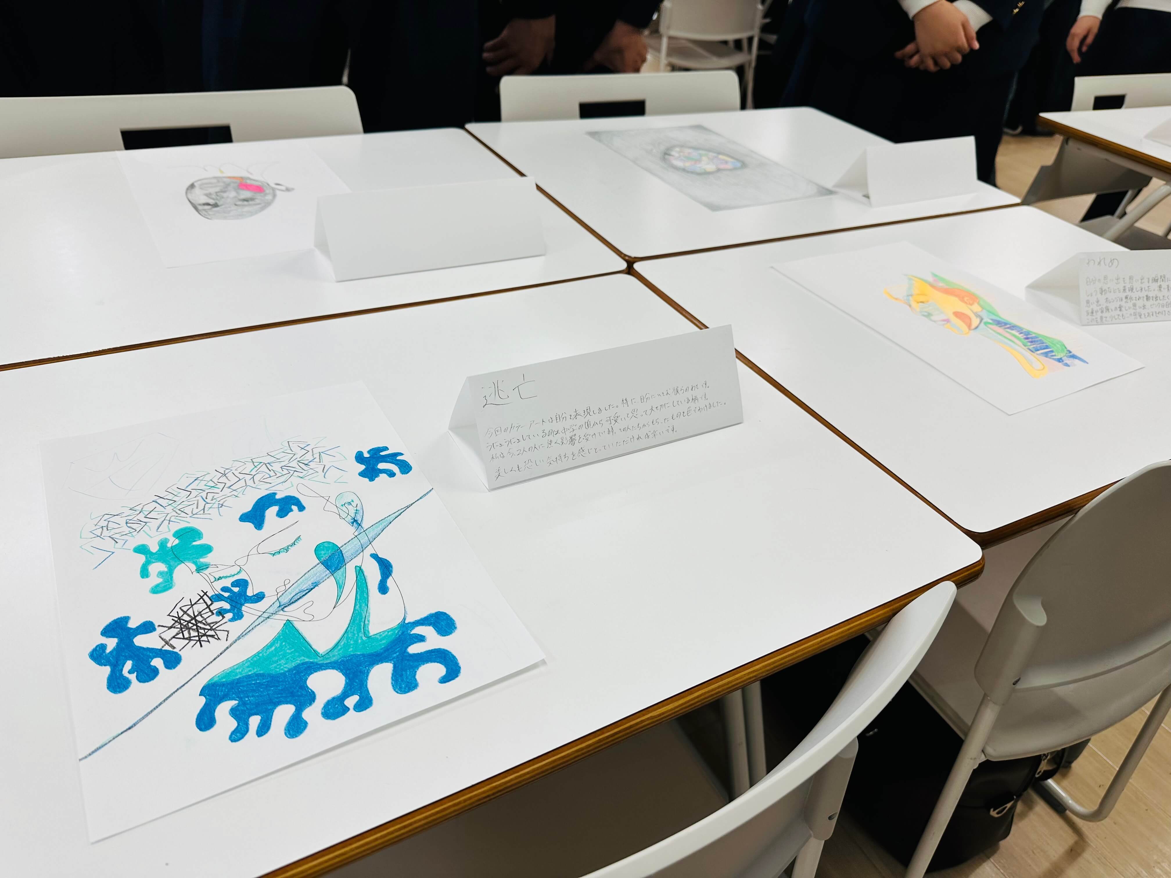 この鑑賞会でも違いに触れるだけではなく、それぞれの作品を時間をかけて味わうことで、作者とは異なるストーリーが鑑賞者の中では生まれていたり、自分とは異なる表現方法に触れるのも楽しみのひとつです。色に対する捉え方の違いや言葉では言い表しにくいことを色を使って表現してみることで自分を表現する幅が広がる。そんな広がりを楽しんでもらいます。