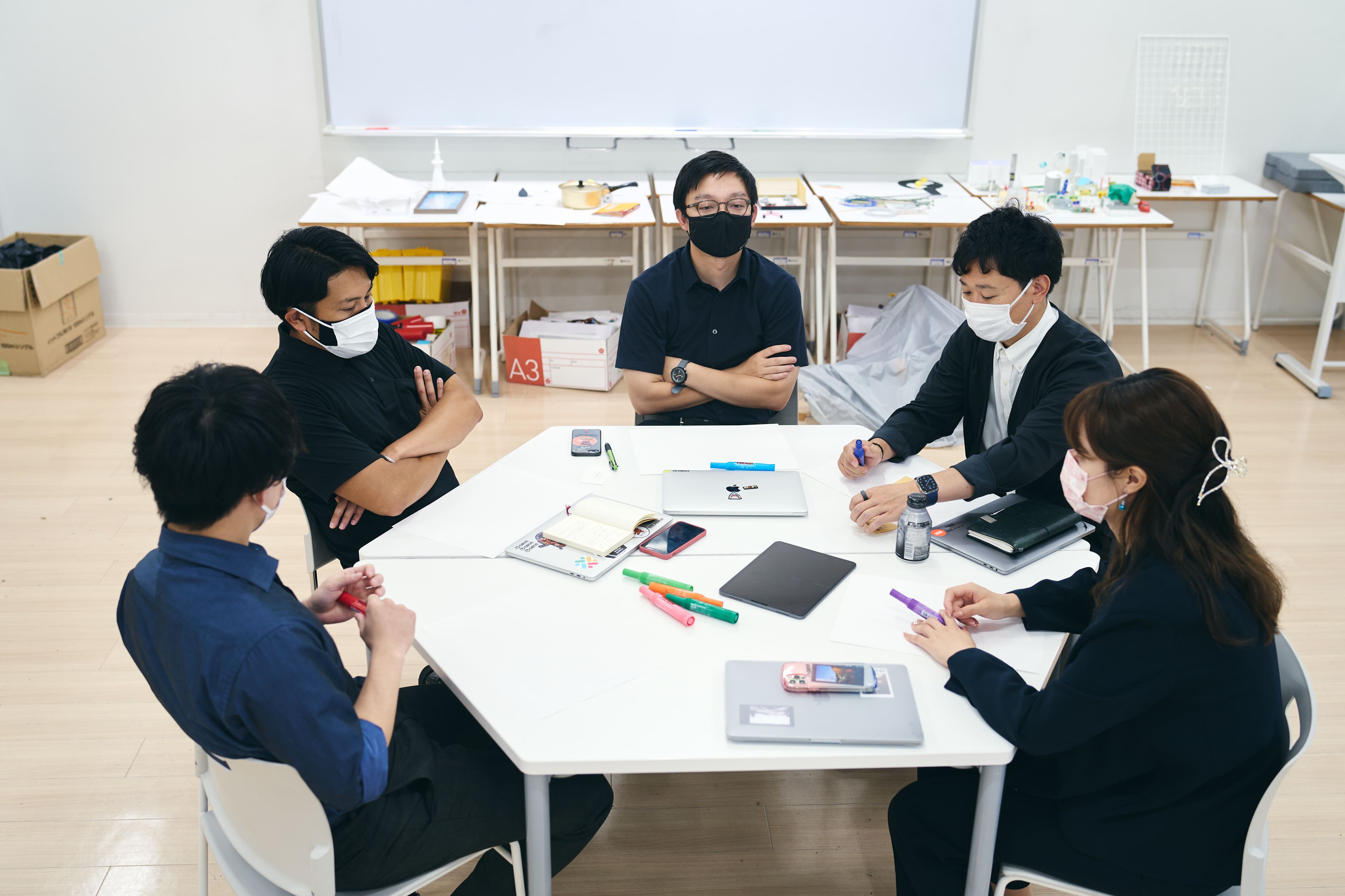 俺は「オリジナリティを引き出す」ということをいちばん大切にしているかな。例えば「生徒たちの作品はジャッジしない」って言うのが俺たちの共通ルールだよね。とはいえ「この作品、ええな!」って感じてしまうこともある。だからそもそもジャッジできないインプットとアウトプットを考えるようにしているよ。例えば「絵を描く」場合、どうしても上手い下手とか良し悪しの判断が生じてしまうから、そうならないものを題材に選ぶとか。だから基本的にアウトプットは最後に考えてる。