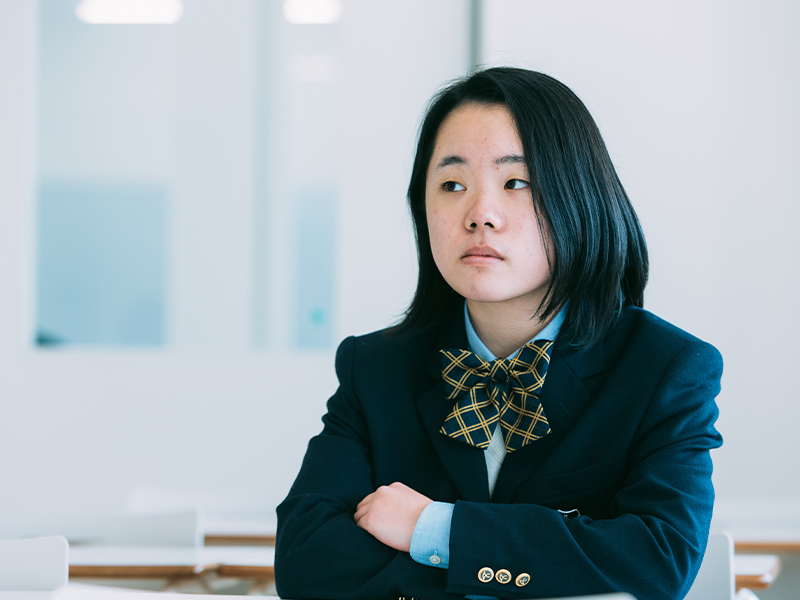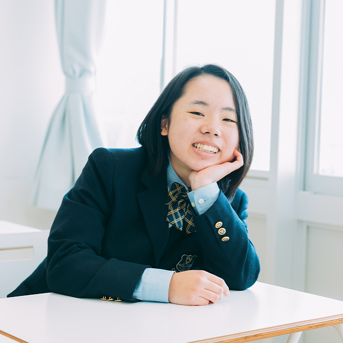 追手門は先生も生徒も、みんながとてもフレンドリー。学校って、だいたい仲のいい人たちだけで固まって「話せる人と話す」のが普通ですよね? 私も以前はそうだったのですが、ここでは「話したい人と話す」ことができます。半分以上の授業で、グループ学習が取り入れられているからかもしれませんね。そういう環境のおかげもあり、すぐに質問や相談ができるので、勉強はとてもはかどります。また担任の先生が「勉強と同じくらい、全力で趣味や部活、遊びにも取り組んで!」と言ってくれるんです。だから学業はもちろんですが、自分の好きだと思えることに積極的に挑戦できるようになりましたね!
