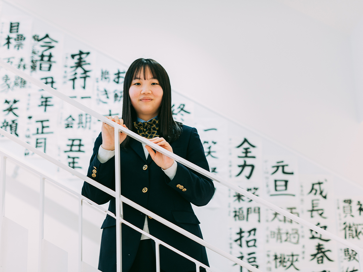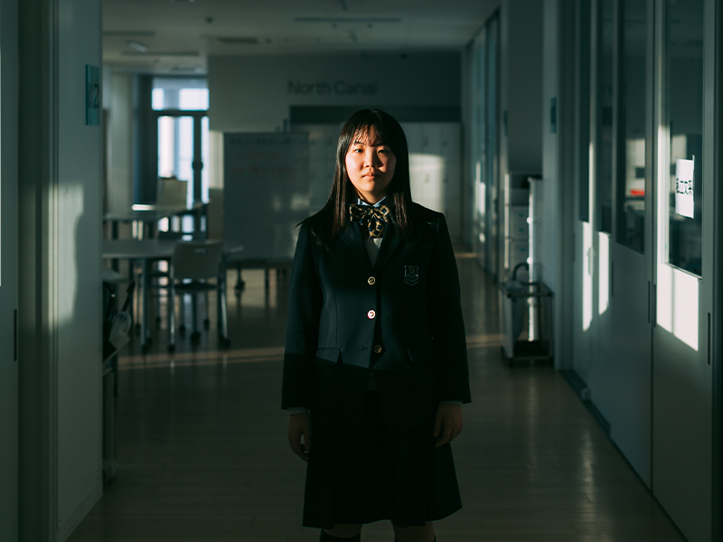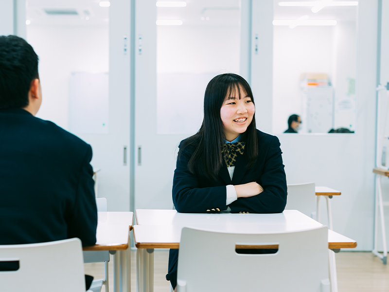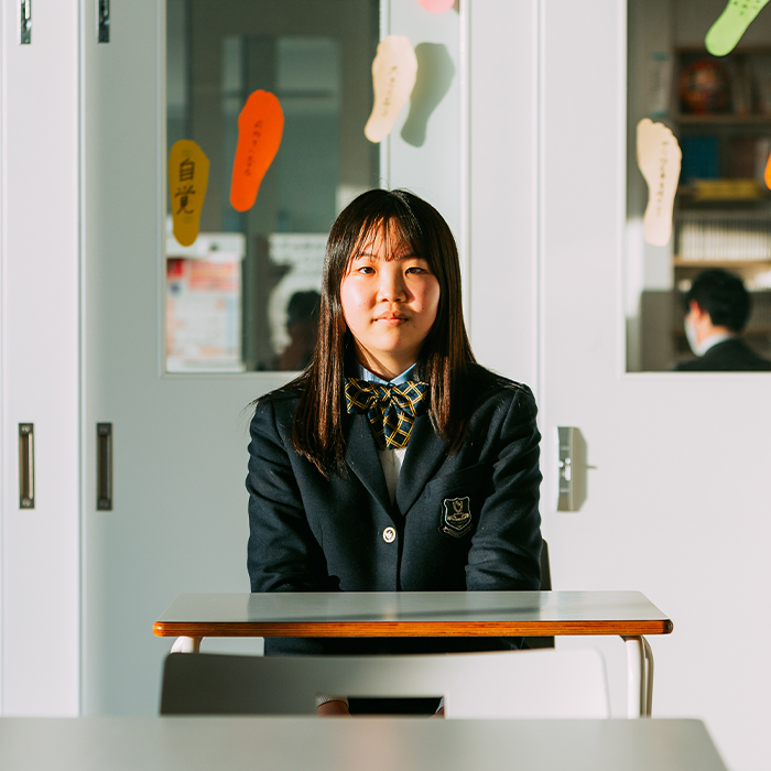 私は性格的に、どうしても周りの空気を読みがち。もちろんそれは集団行動での協調性や、必要な行動の把握につながるので、いい面もたくさんあります。しかし裏を返すと無意識のうちに自分を押し殺して人に合わせてしまうということでもあって……。そんな自分がが、この学校に入ってから少しずつ変わっていきました。特に探究の授業で、自分の作品や意見を褒めてもらう機会も増えてたこともあり、そういった同級生や先生からのフィードバックが、自分の自信につながっているのを感じます。今では周りに同調するだけでなく「私は、こう思う」と自分で考え、発言する力がつきました。他の人の考えや行動の意味などを察して尊重する力はそのままに、これからは自分の意思をしっかりと伝えていきたいと思います。