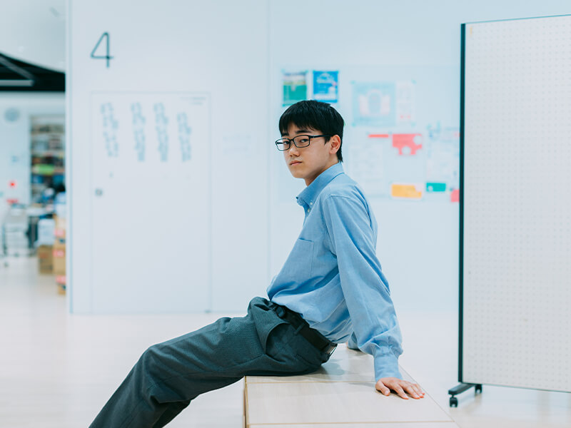 僕がこの学校に入学しようと思ったのは、オープンスクールで探究の授業を体験した時。中学までの授業にはいつも“答え”がありましたが、探究にはありません。だからこそ自分らしさを表現できる場だと思ったし、魅力に感じました。また幼い頃から工作が好きで、今でもDIYで棚をつくったり、はんだ付けで行う電子工作などをしたりしています。作品づくりを通じて自分自身の思いを表現したりカタチにしたりする探究の授業は、自分がやってきたモノづくりと似た要素がたくさんあって、楽しみながら取り組めると感じました。