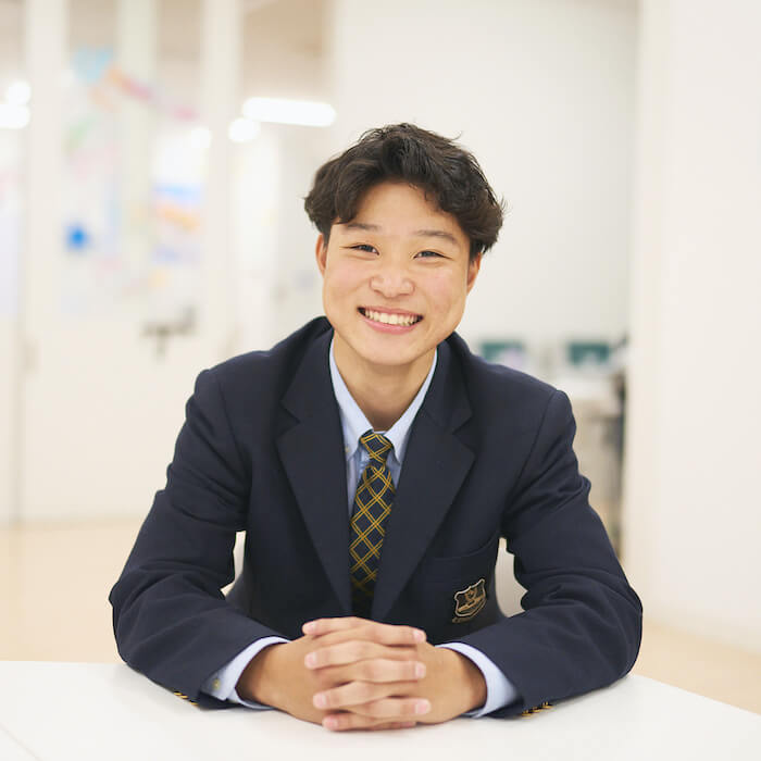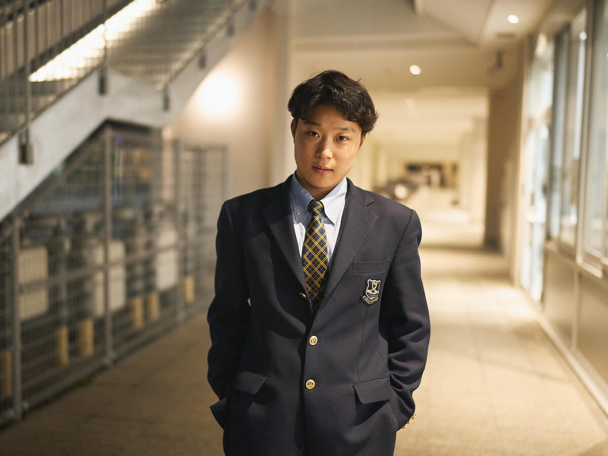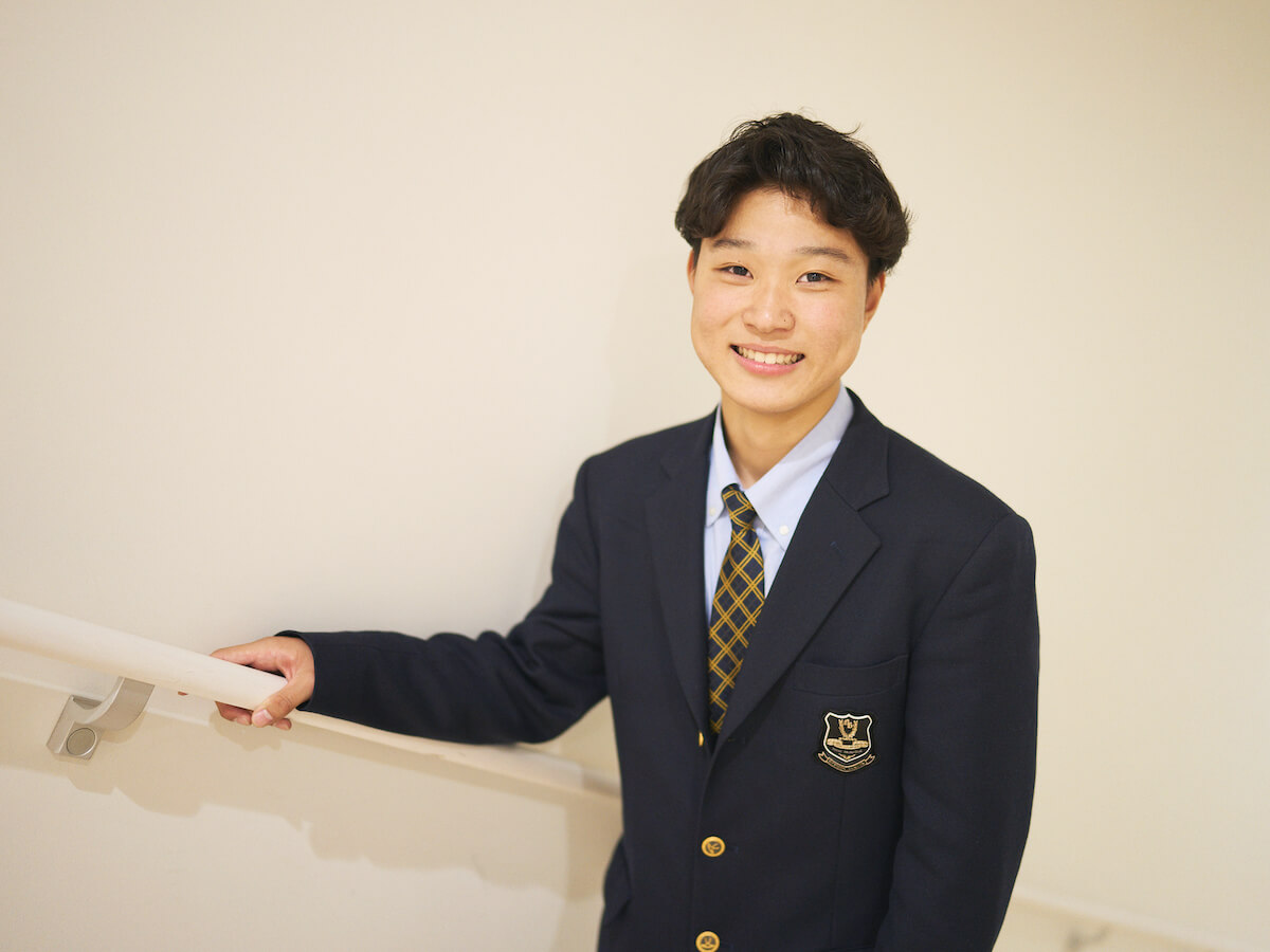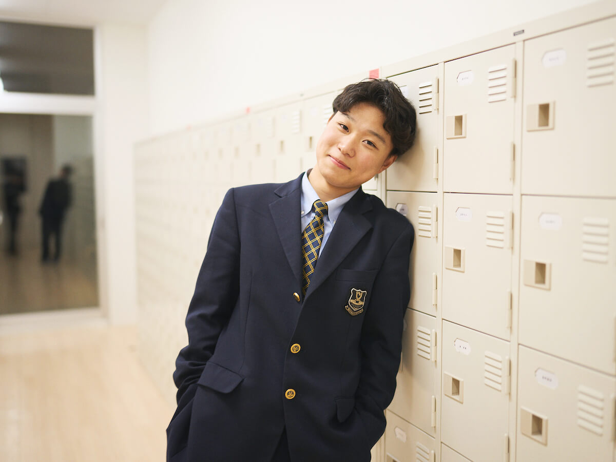 僕はこの学校の『Ⅱ類』コースに入学しましたが、2年生から『Ⅰ類』コースに所属することになりました。これは1年の時に部活を辞めて勉強に打ち込もうと思ったからです。Ⅰ類には英語が堪能な人がたくさんいて、2年になったばかりの頃は「絶対に敵わない」と思っていました。だけどあきらめずに頑張り続けた結果、なんとこの前の定期テストでは、英語の点数がクラスでトップ。やればできるということを、自分の力で証明できたと思っています。僕はもともと「トップであること」が大好き。以前からずっと海外に興味があるんですが、いちばん行ってみたい国はアメリカです。その理由はもちろん世界でもっとも力がある国だから。その中でもいちばん栄えているニューヨークに行きたいですね。