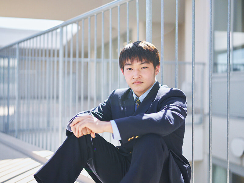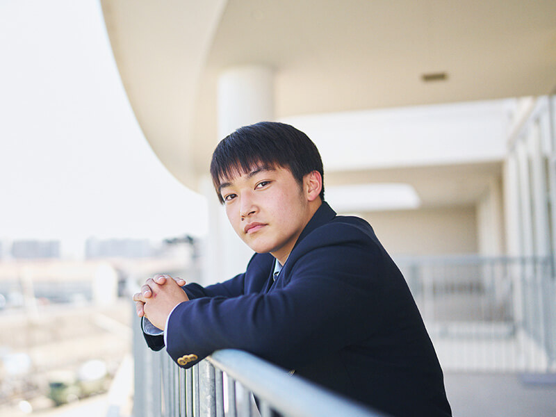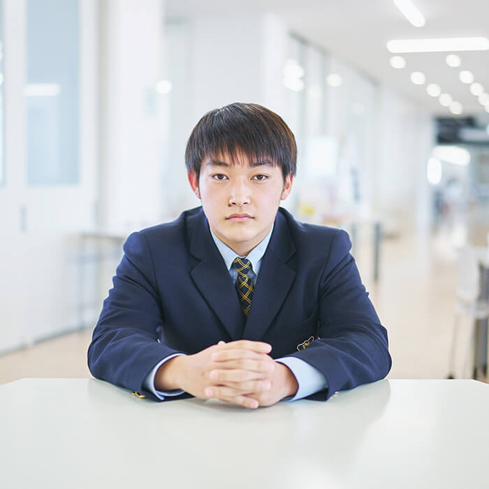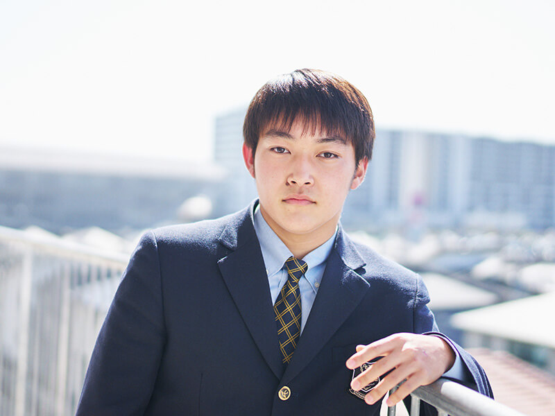 僕は2歳の頃から水泳を習っていて、ずっとそれに打ち込んできました。そんな中で、小学6年生の時に、友人に誘われて行った体験教室で水球というスポーツに出会います。そこからは今に至るまで、水球にのめり込み、頑張ってきました。所属していたチームの先輩が追手門に進学し、水球で活躍している姿を見て、学業とスポーツの両方に力を注ぐことで、文武両道が実現できる環境があることに惹かれたのが、この学校への進学を決めた理由。入学してからは、部活のことだけで頭がいっぱいになりそうになるタイミングが多々ありましたが、大学でも水球を続けたいので、勉強もきちんとすると決めています。僕が在籍しているスポーツコースには、競技の種類はさまざまですが、同じ「日本一を目指す」という目標を持った仲間がいるのがいいところです。水球で壁にぶつかり、挫けそうな時でも、クラスメイトが努力している姿を見ることで「自分も負けられない」と思うことができますね。